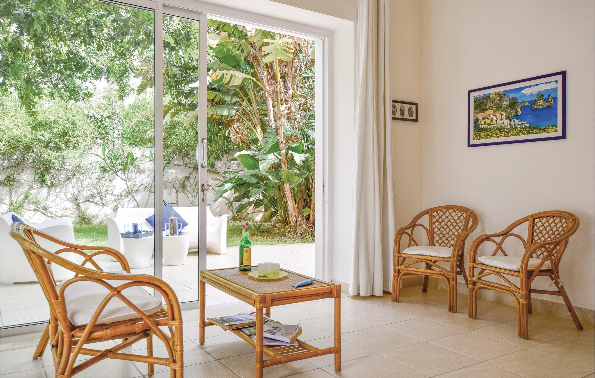 Denne del af et dobbelthus ved indgangen til landsbyen for Marina di Ragusa, er stilfuldt indrettet. Gæsterne har en have med store gamle johannesbrødtræer, som giver skygge midt på dagen. Et udendørsområde er udstyret med køkken. De overdækkede områder er ideelle til hyggelige stunder udenfor i det milde klima. Indvendigt er der en opholdsstue som har adgang til haven via store glasdøre.