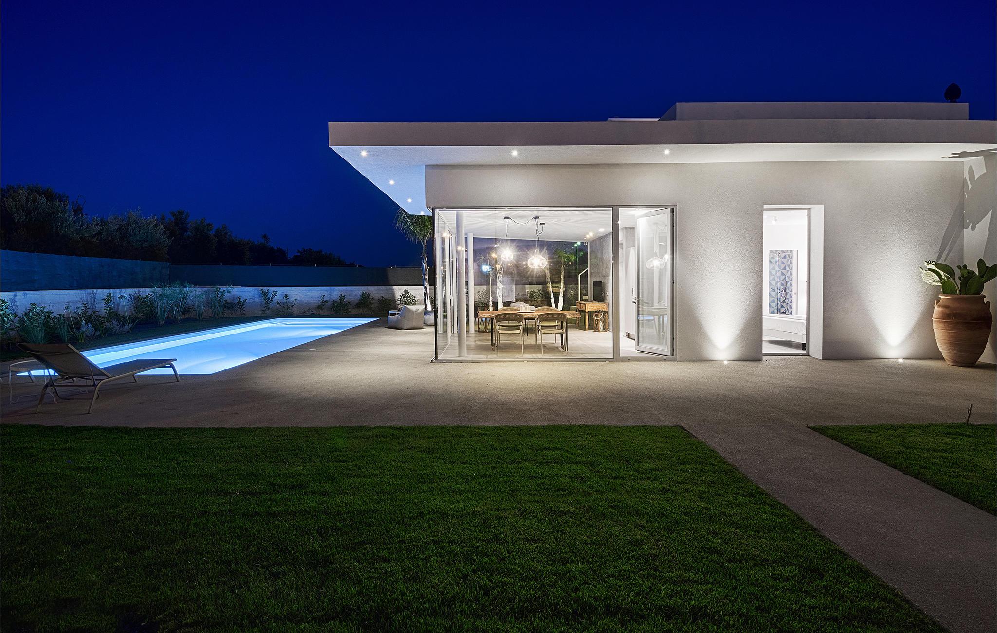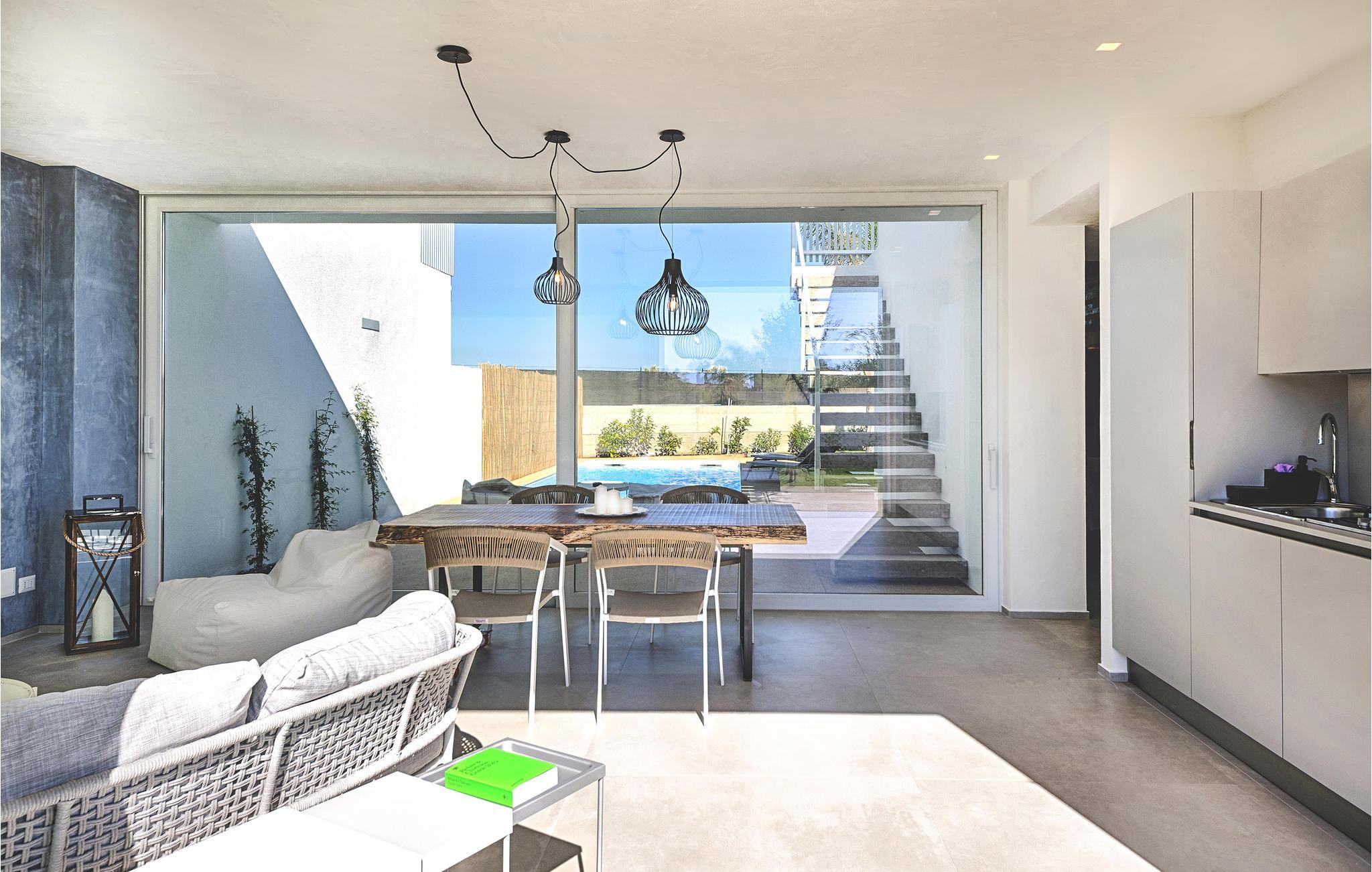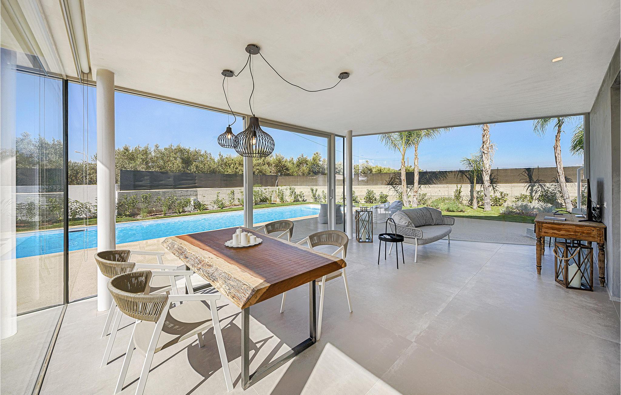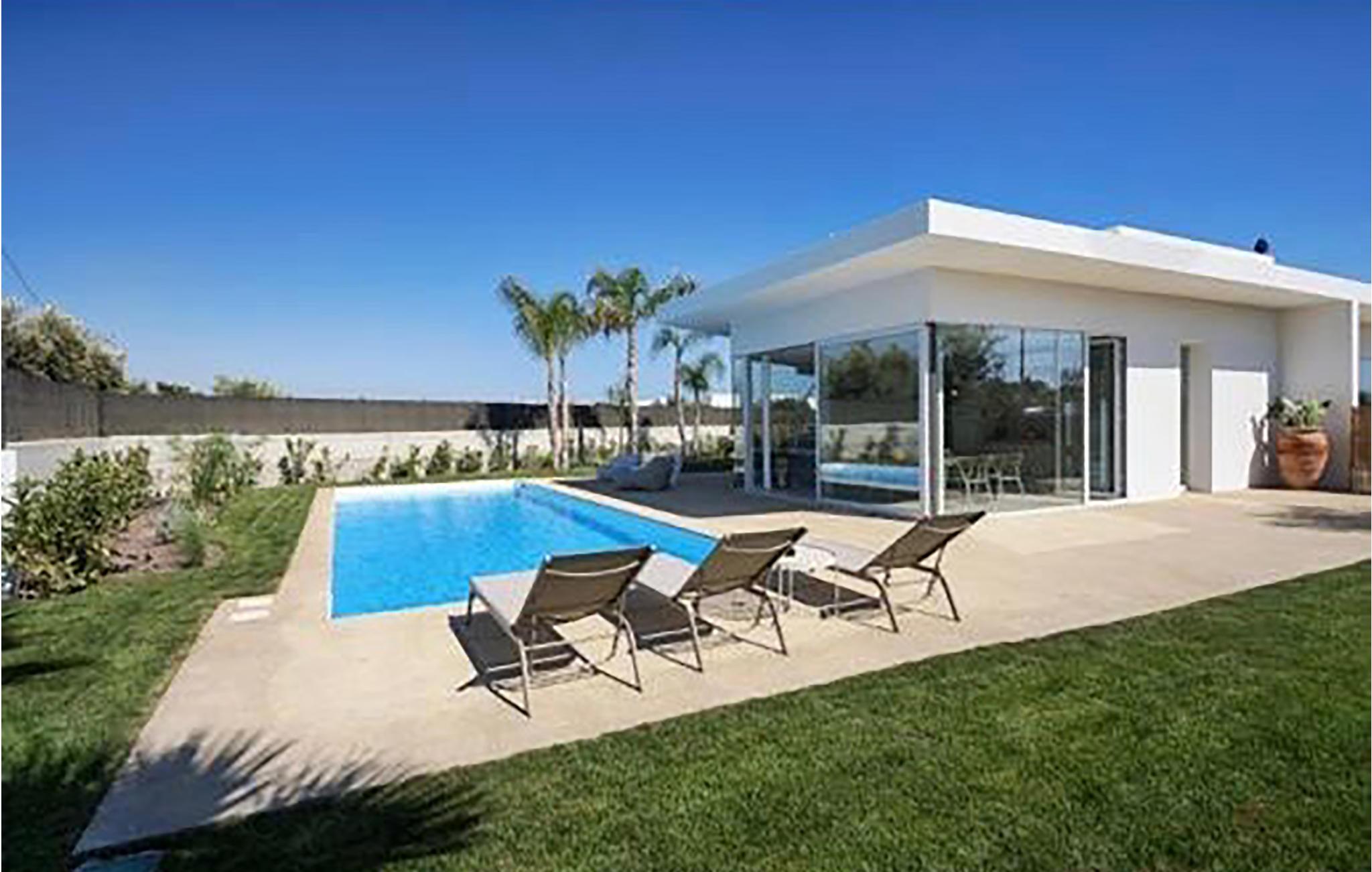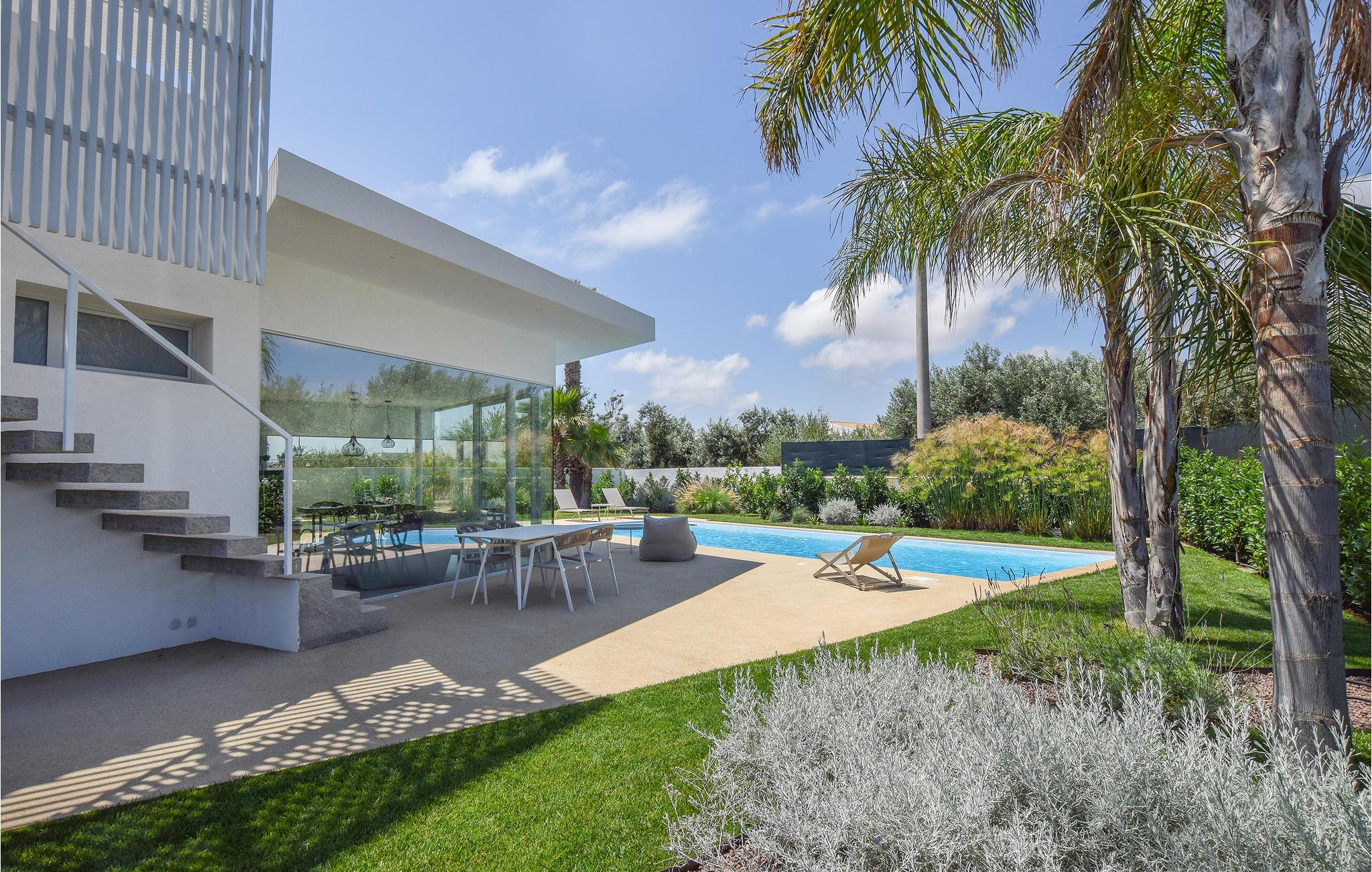 Dette feriehus er det ideelle sted for elskere af moderne design, der værdsætter kvalitet og stil. Masser af lys, store glasoverflader, smagfuld indretning og klare konturer dominerer det indre af huset. Huset kan rumme 5 personer i 2 soveværelser og 2 badeværelser. Fra opholdsstuen har du udsigt over poolområdet og haven. På varme dage kan du køle af i den 50 m² store pool eller i den udendørs stående vandboblebad til 4 personer. Eller slap af på en af ??terrassen med en god bog og en kold drink.