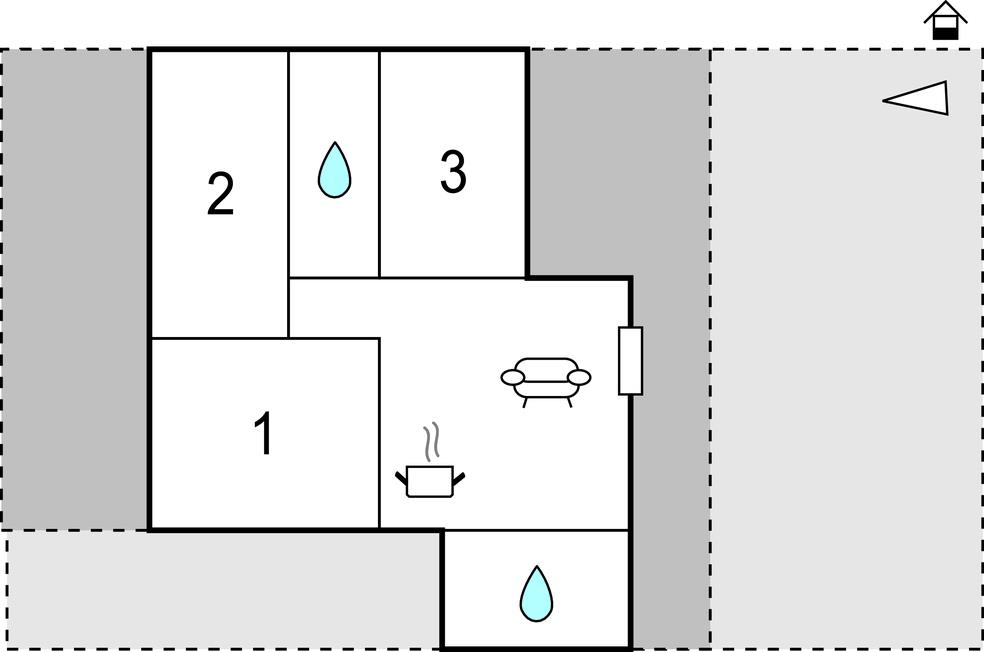 Badeværelse 3m2 (nr. 1) - WC. Varmt og koldt vand. Bruser