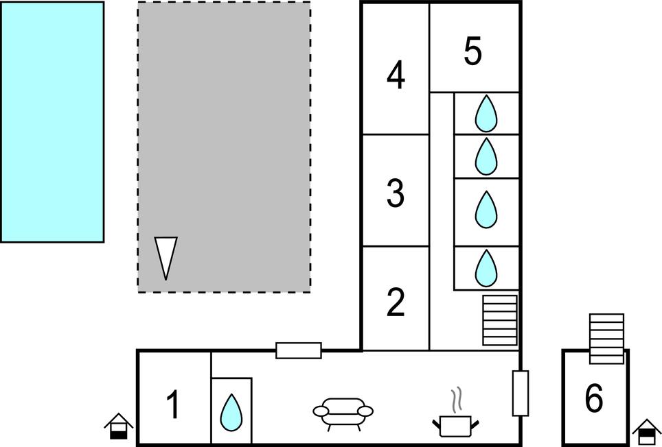Badeværelse 3m2 (nr. 6) - WC. Varmt og koldt vand. Bruser
