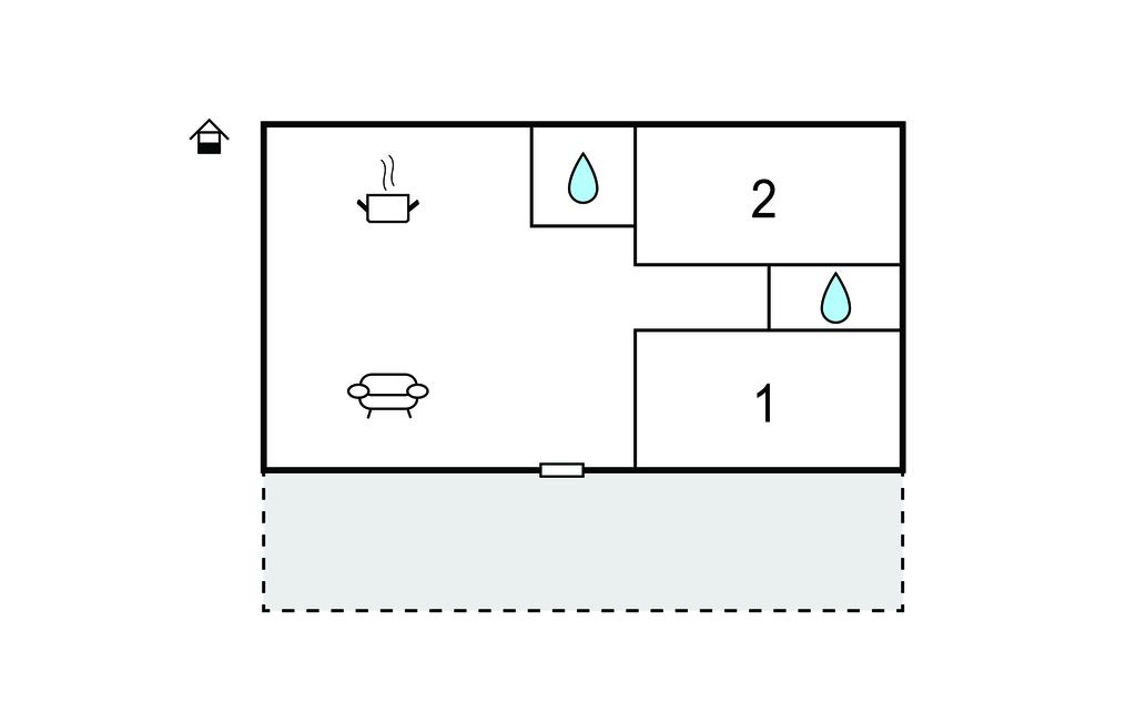 Opholdsstue/køkken 25m2 - 2 Sovepladser. (Sofa, madras eller lignende).