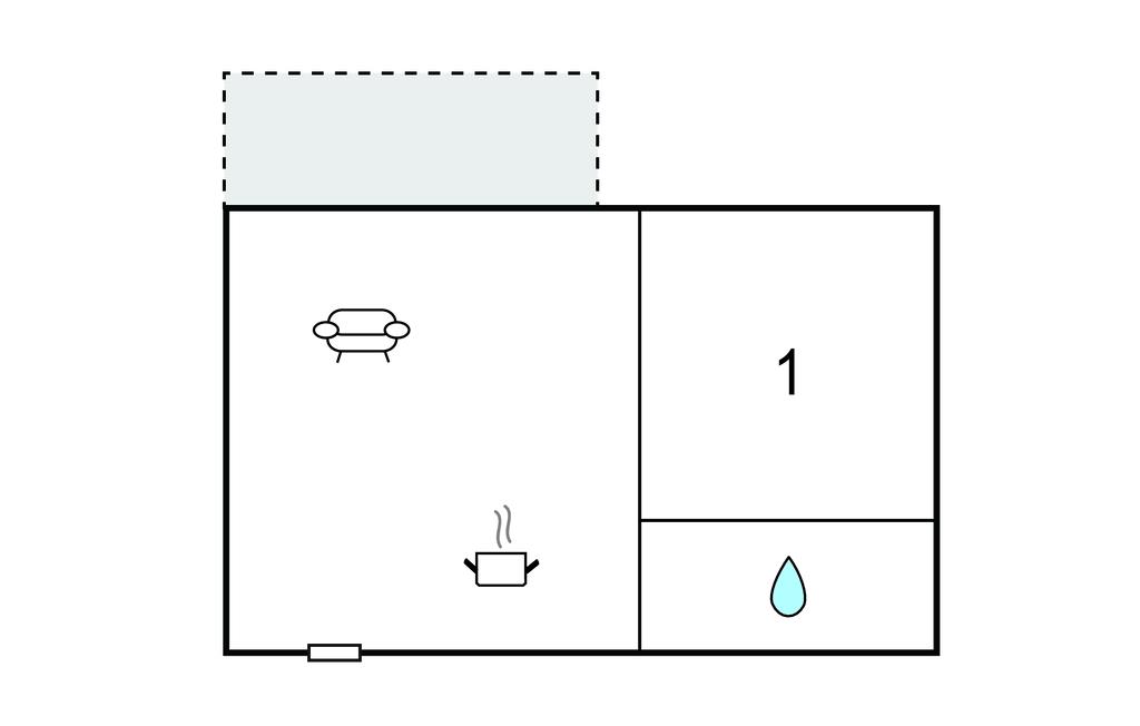 Opholdsstue/køkken 35m2 - 2 Sovepladser. (Sofa, madras eller lignende).