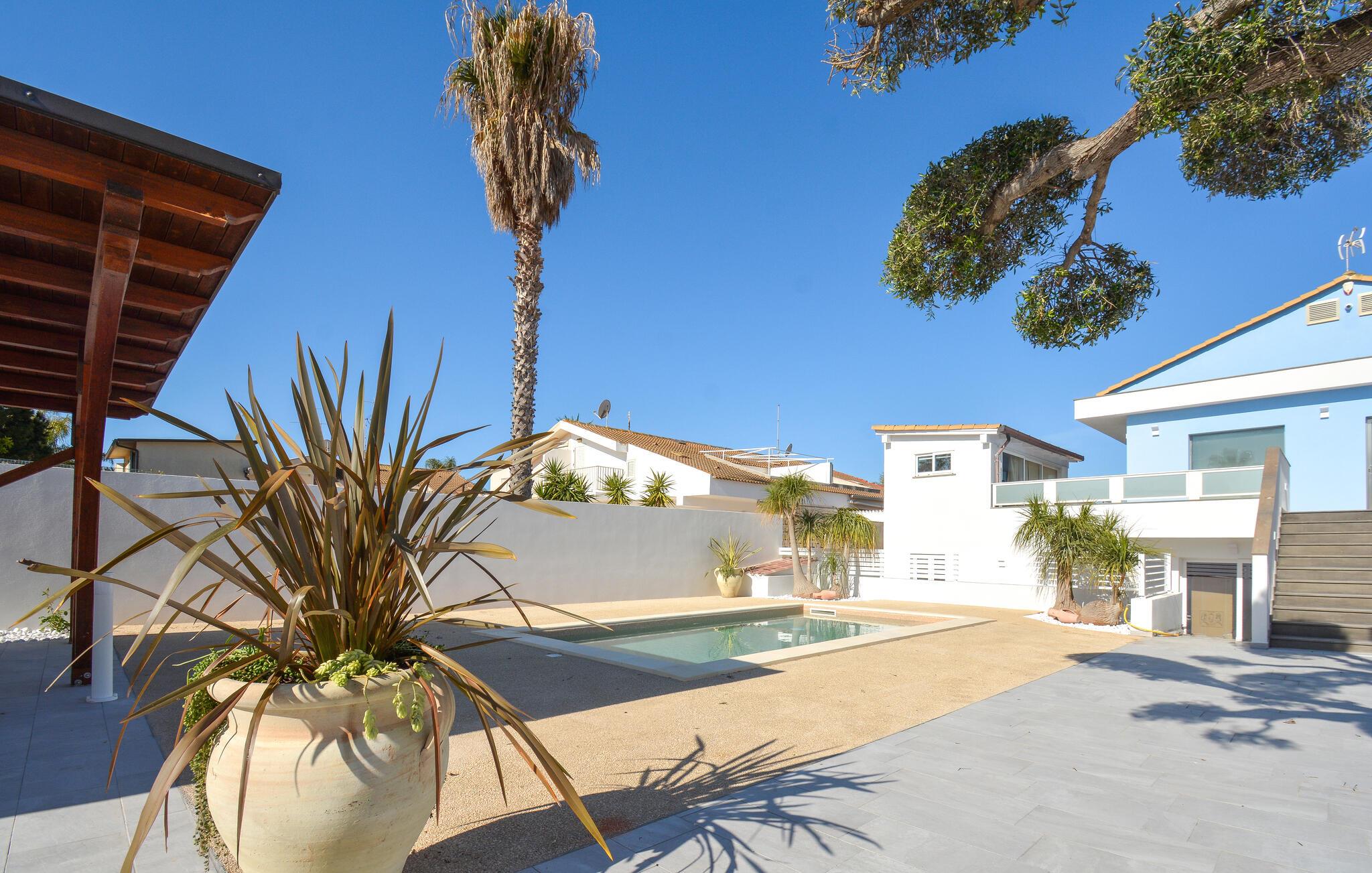 Nyd en afslappende ferie i dette rummelige feriehus med pool.