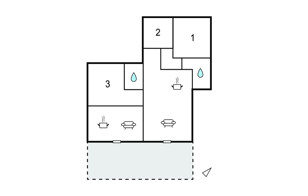 Opholdsstue/køkken 30m2 - 1 Soveplads. (Sofa, madras eller lignende).