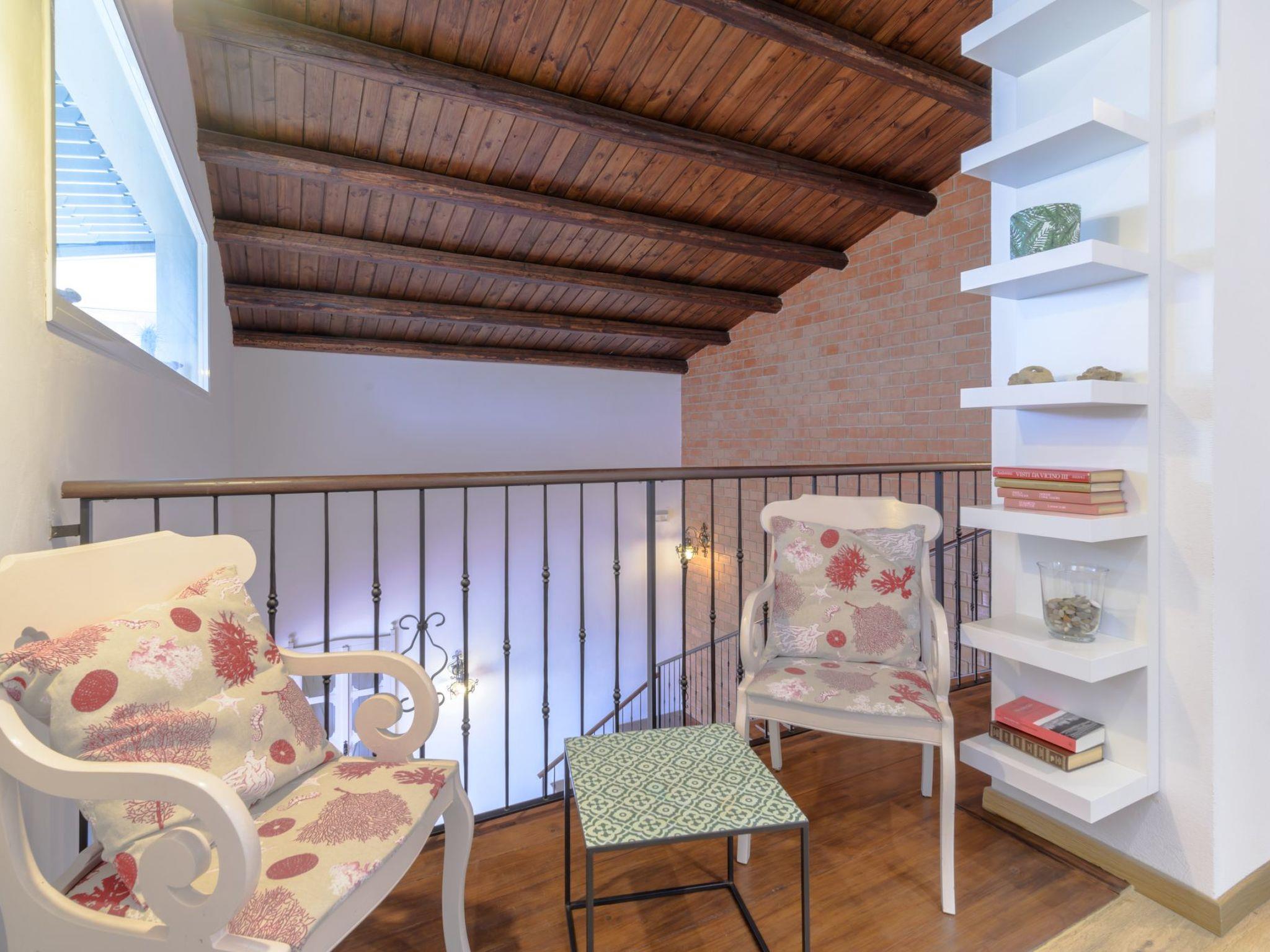Outside The villa, on two floors, has many furnished outdoor areas (210 sqm). A large terrace, with splendid sea views, has outdoor furniture and a dining table and enjoys direct access to the beach. A green area (60 square metres) with flower beds and succulent plants. A beautiful furnished terrace, on the first floor, with a panoramic view of the Caucana coast. A small terrace, on the first floor, with laundry and washing machine.