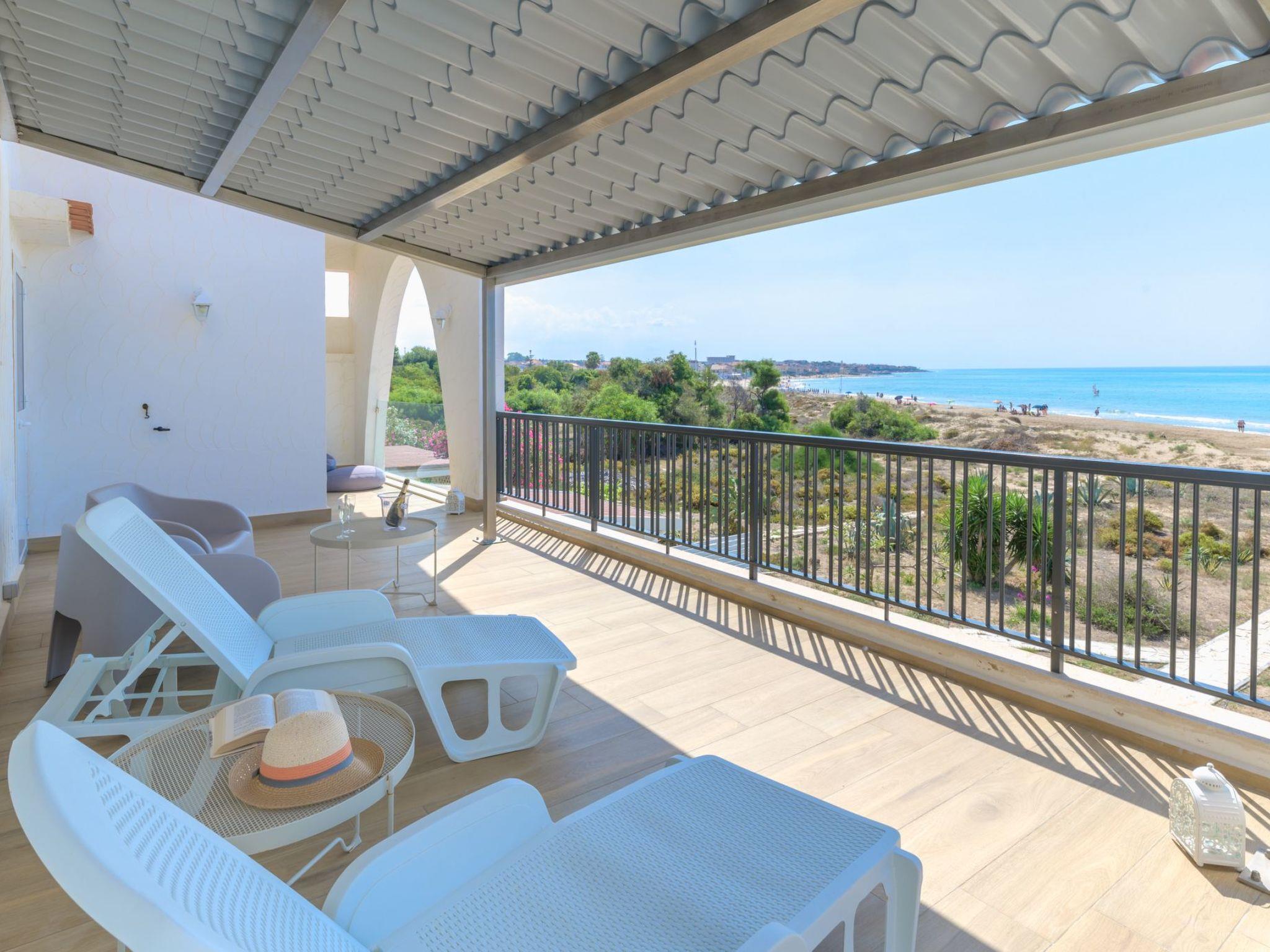 Location The villa is located right on the beach, facing the sea, in the village of Caucana, 2 km from Punta Secca and 4 km from Marina di Ragusa, in the south-east of Sicily. Punta Secca is a famous fishing village renowned for being the set of the Italian series 'Il Commissario Montalbano' and for being home to its famous house. Not far away are the UNESCO cities in the province of Ragusa, such as Ragusa Ibla (27 km), Modica (28 km) and Scicli (18 km) and the beaches of Punta Braccetto (6 km), the Randello Nature Reserve (8 km), Donnalucata (13 km) and Sampieri (24 km). The 'Pio La Torre' airport in Comiso is 30 km away and the golf courses of the Donnafugata Golf Resort & Spa are 12 km away. There is an equipped lido 150 m from the villa.