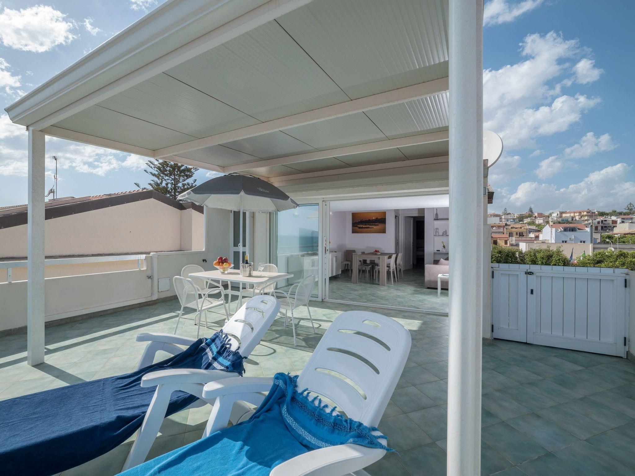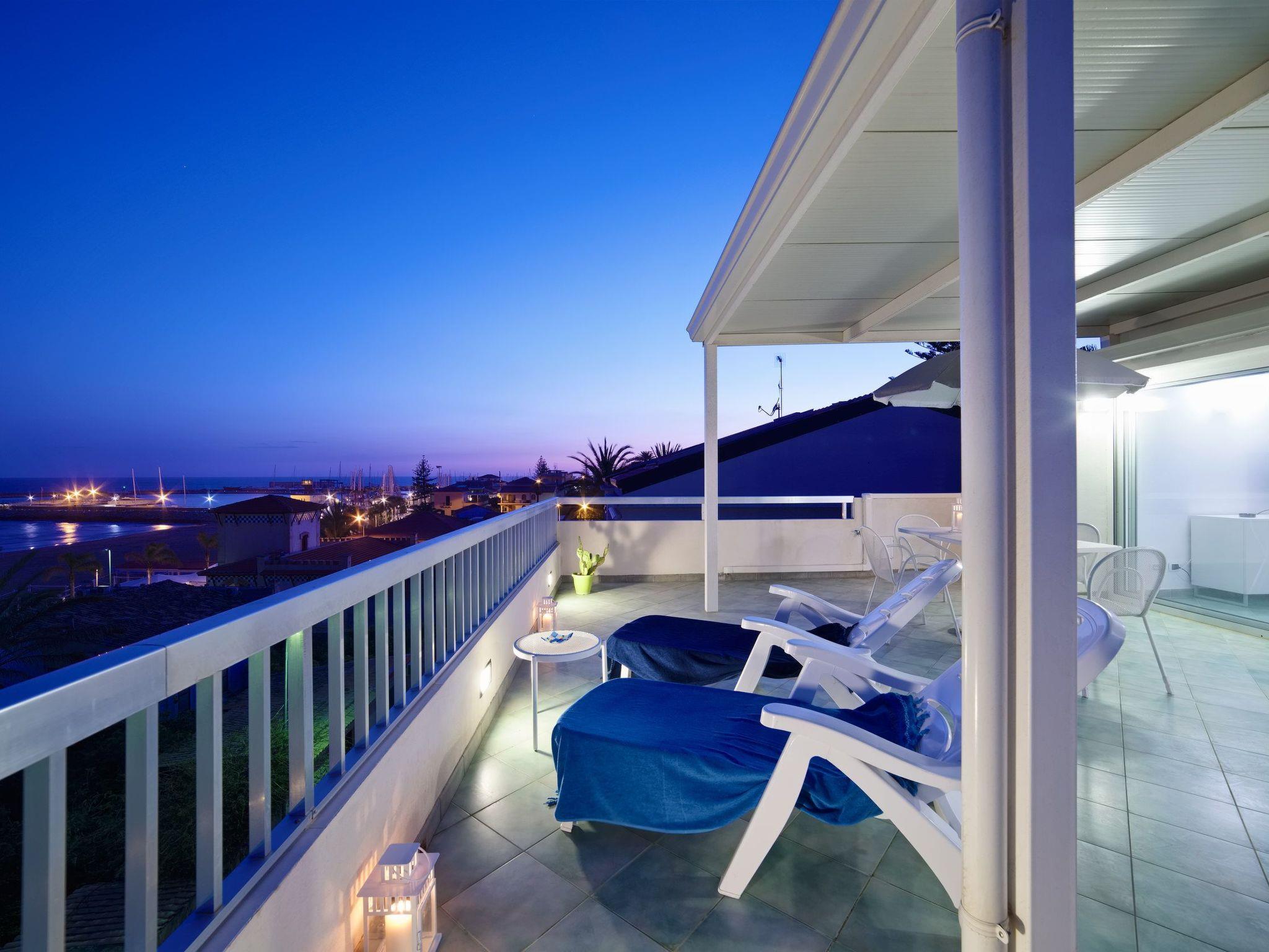 Flat in the centre of Marina di Ragusa, with terrace and splendid view of the sea and the Hyblean coast. Just 100 m from the beach and the Lungomare Mediterraneo, it is 200 m from the main square (Piazza Duca degli Abruzzi). It is ideal for a seaside holiday for couples or families.