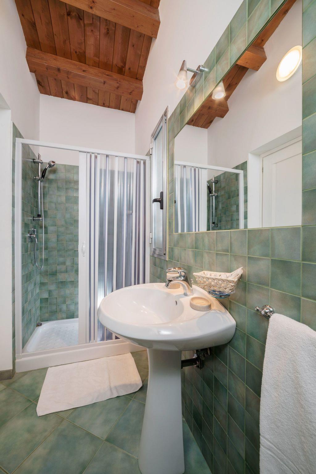 A second bathroom with shower serving the twin bedroom.