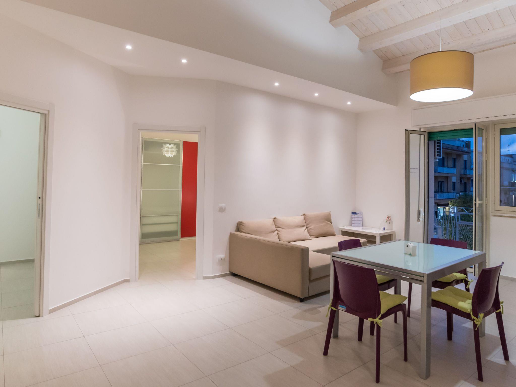 The apartment is on the first floor and enjoys a wide balcony with view over the main square and the lively centre of Marina di Ragusa, and offers a back furnished terrace ideal to have alfresco lunch and dinner.