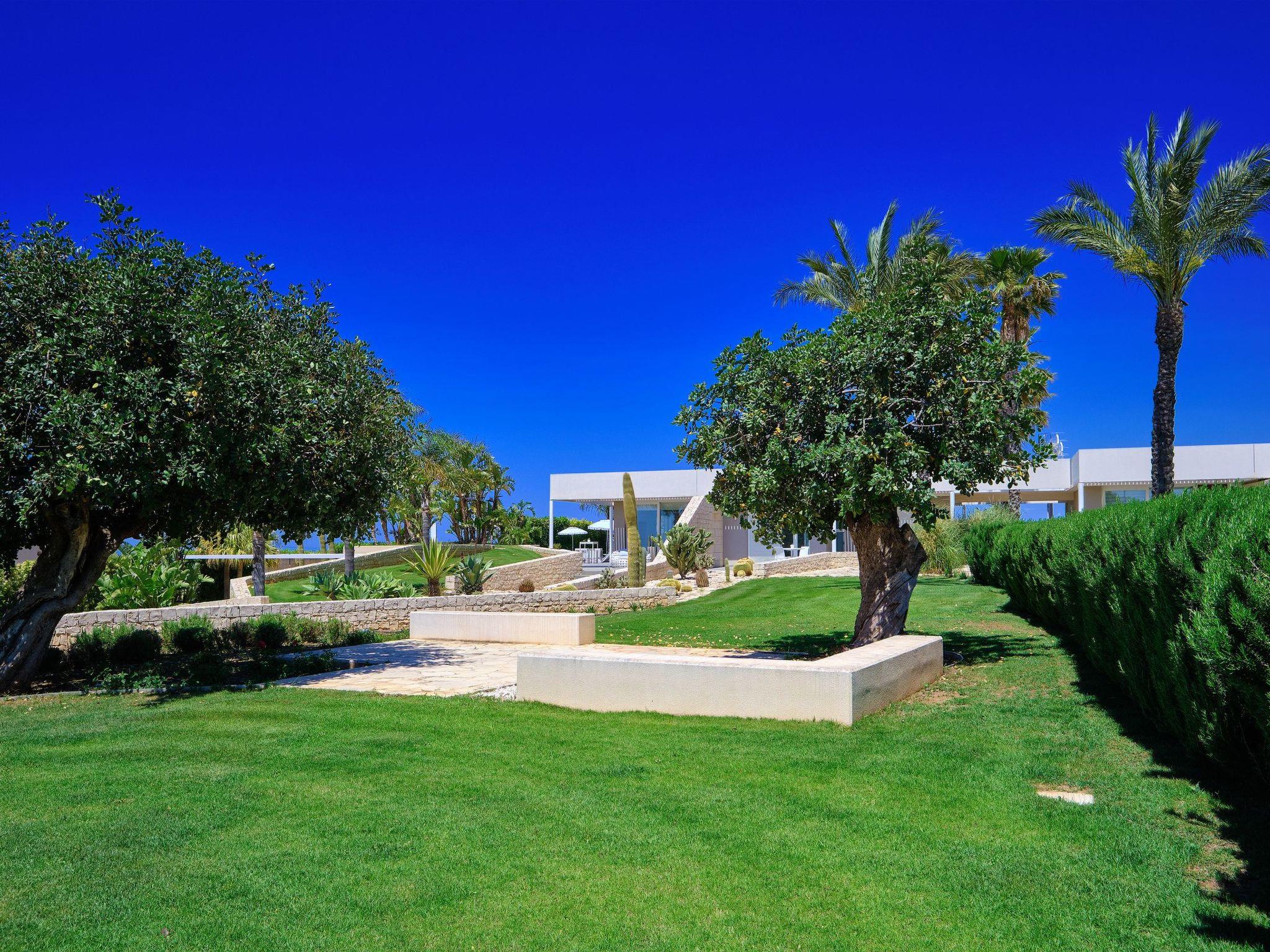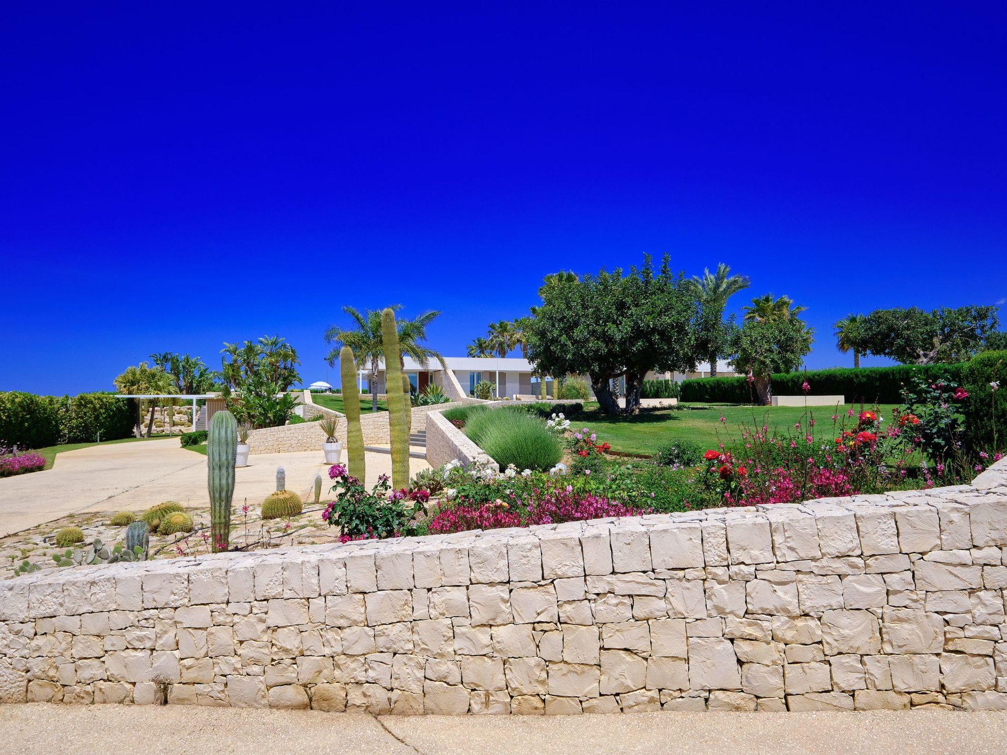 Villa Anthea is located inside a large property surrounded by a garden of palm trees, olive trees, floral plants and flowerbeds.