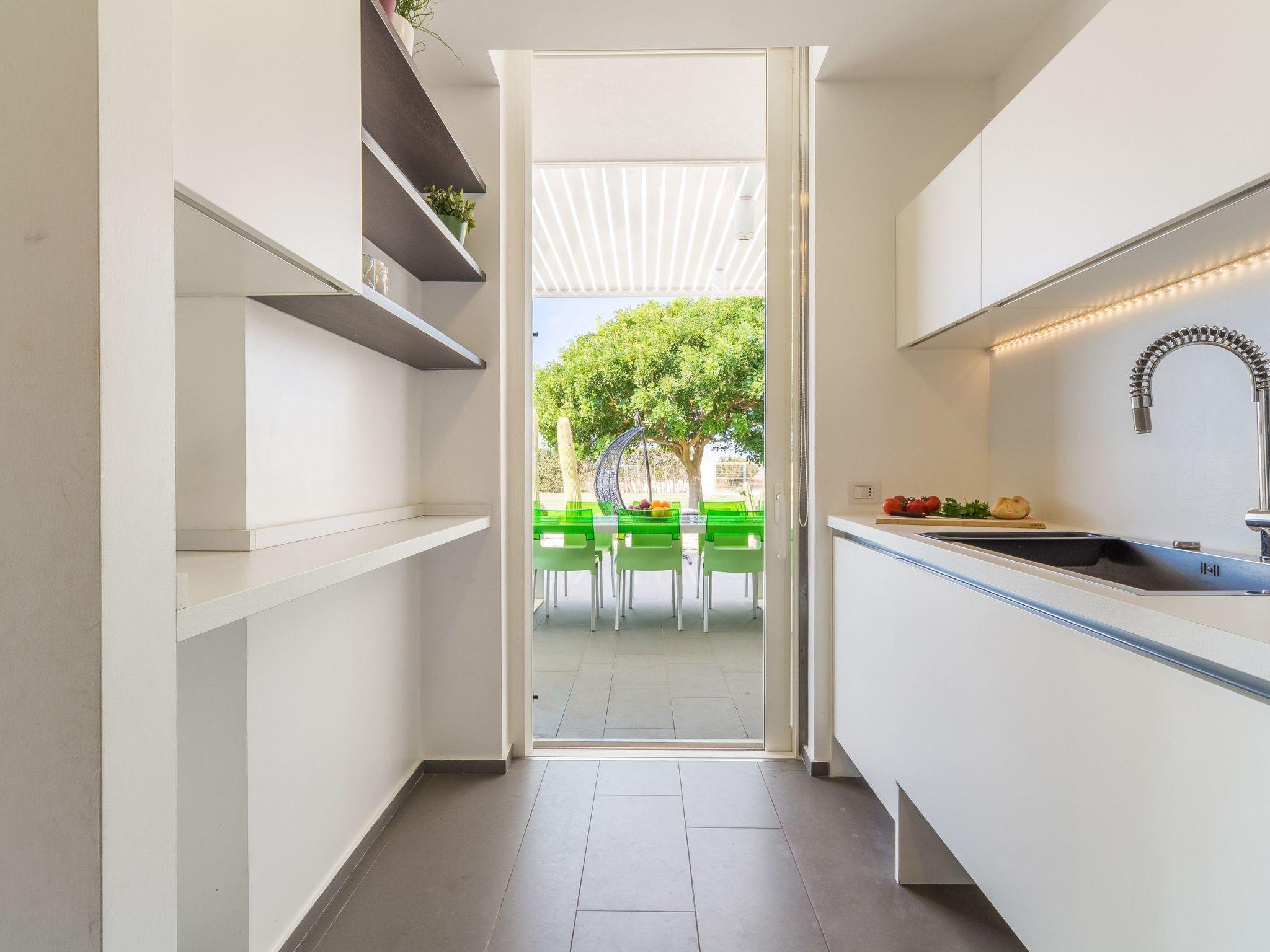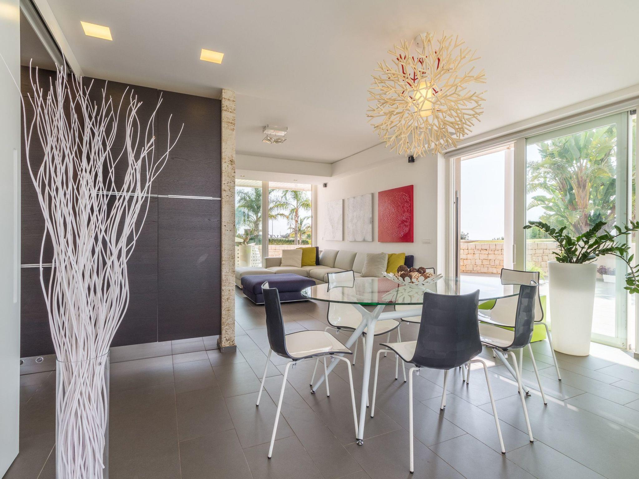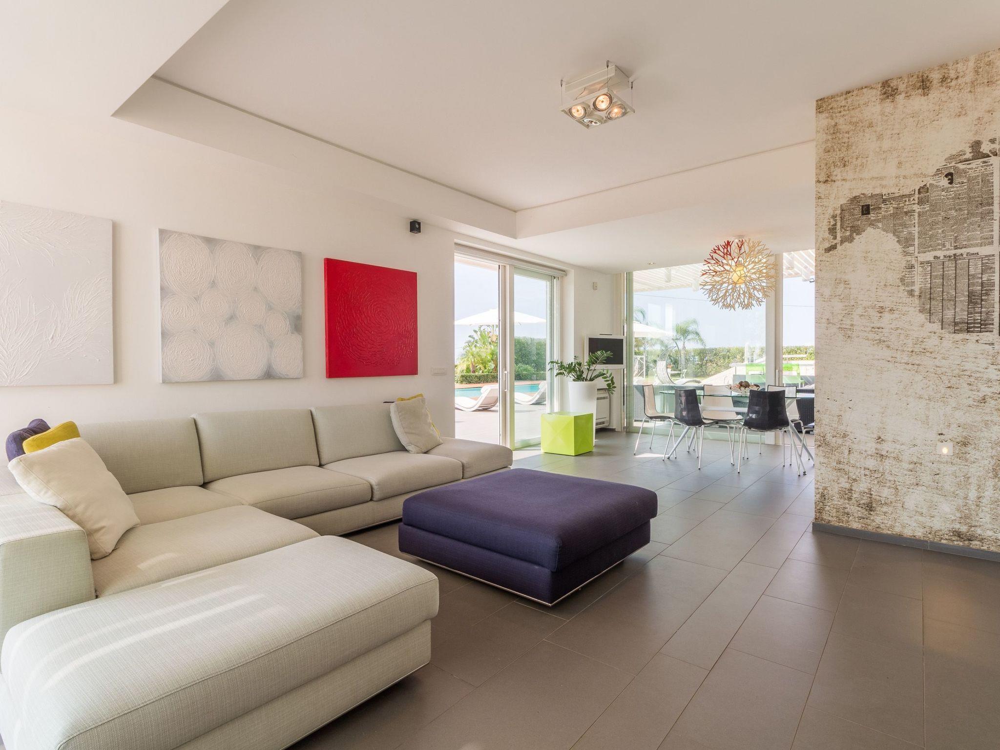 Inside, the villa boasts refined furnishings and bright rooms. The interiors are furnished with attention to every detail, in a minimal style with designer furniture.