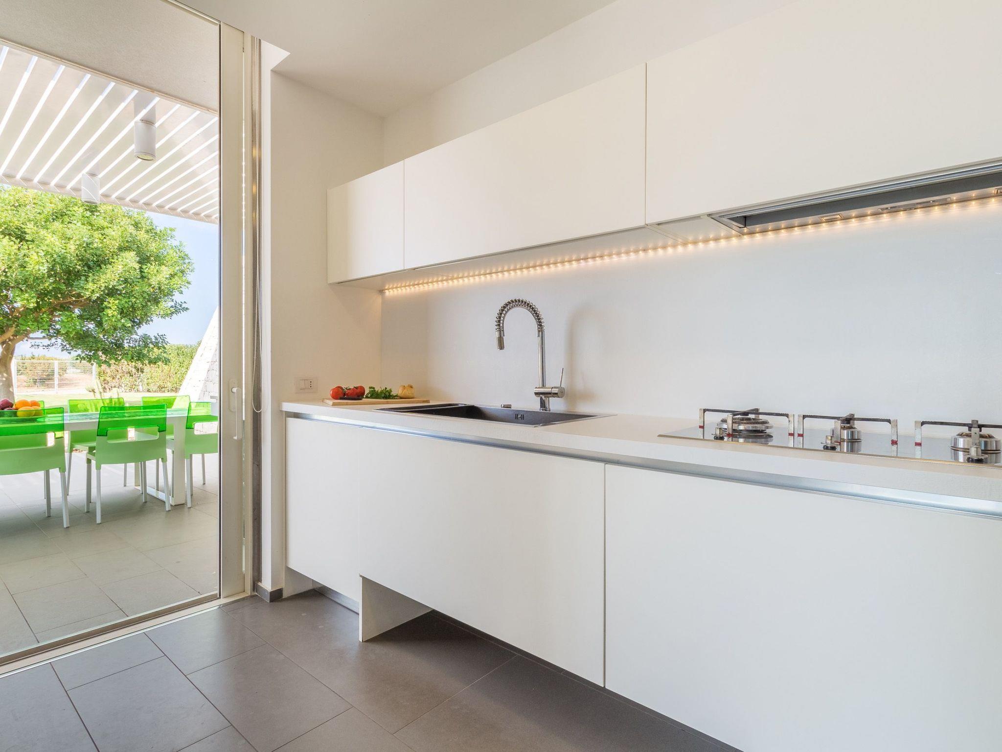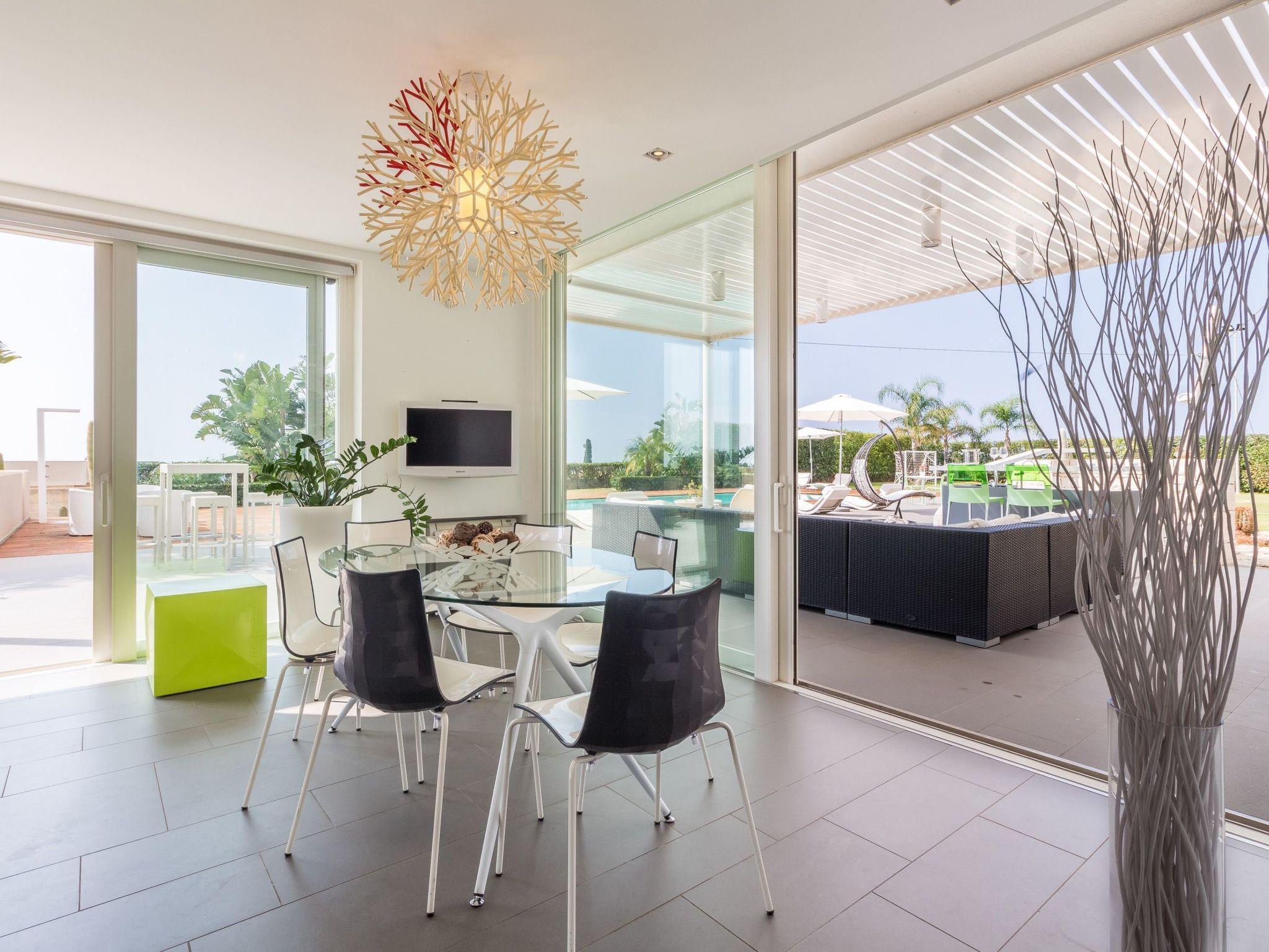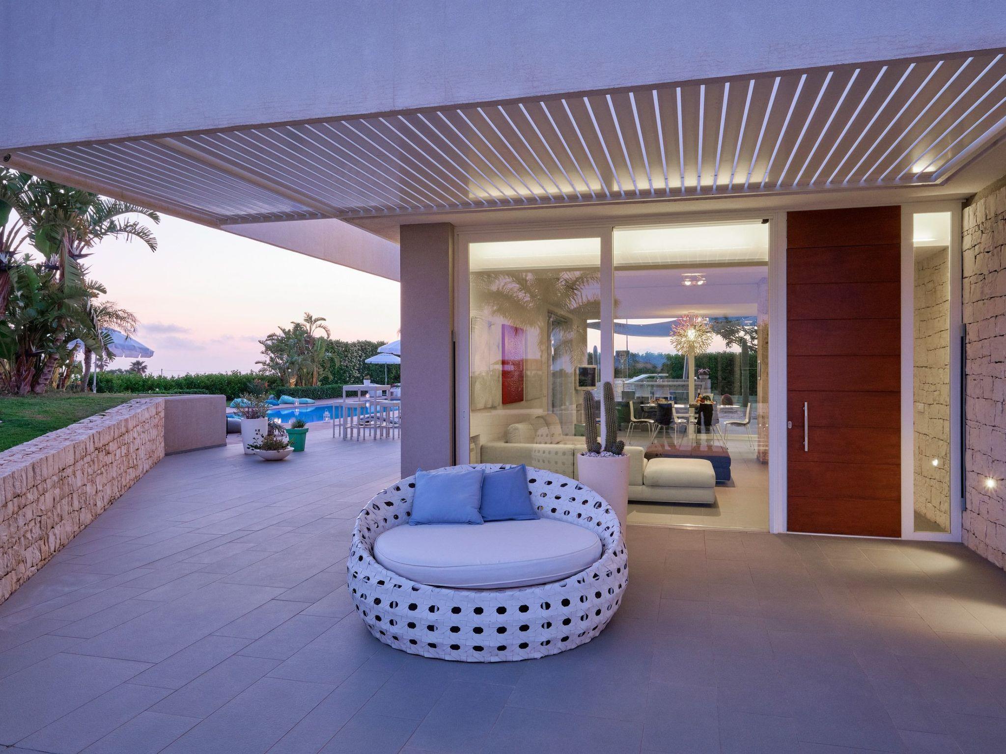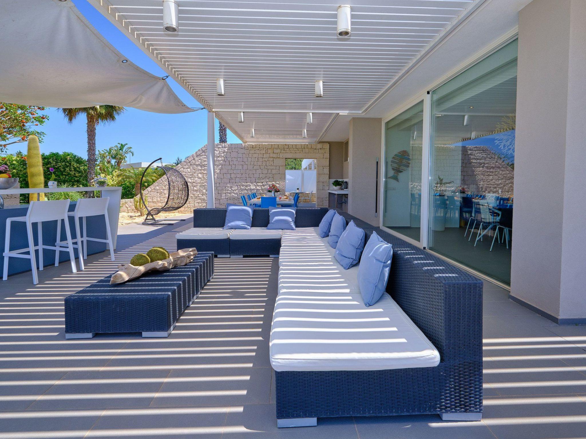 Inside, the villa boasts refined furnishings and bright rooms. The interiors are furnished with attention to every detail, in a minimal style with designer furniture.