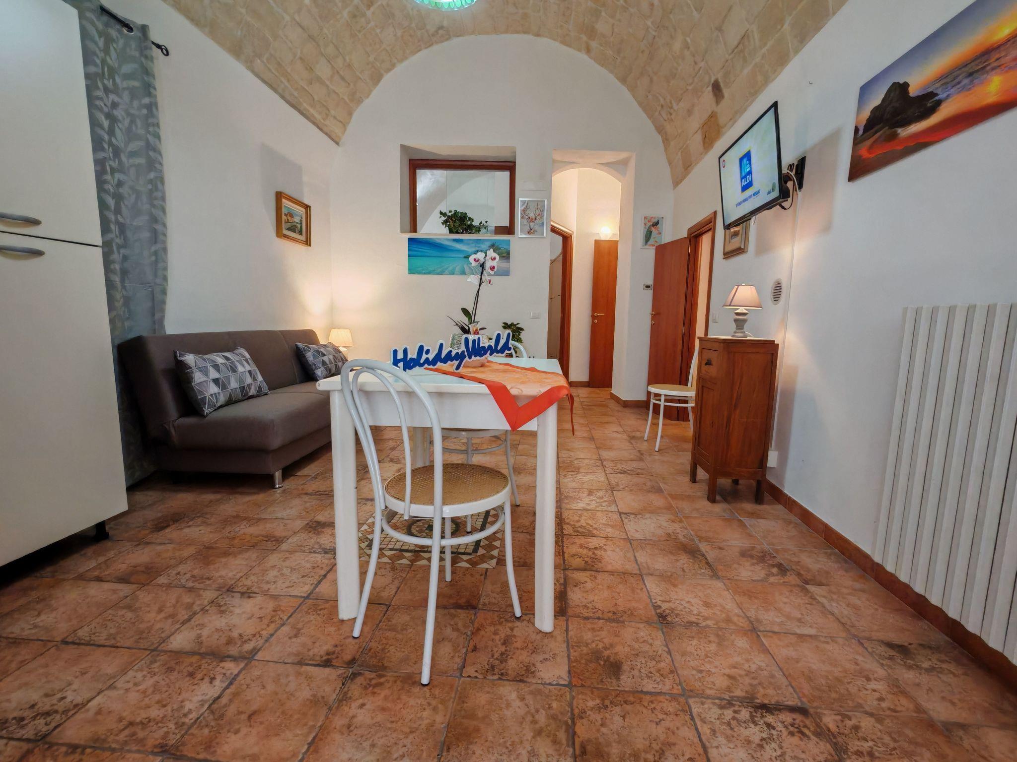 ground floor combines traditional charm with modern comfort. The entrance opens directly onto the street and leads into a cosy open-plan living area, consisting of a fully equipped kitchenette, dining area and sofa bed. A distinctive element of the house is the splendid round stone vault, typical of ancient Ragusa houses, carefully restored to enhance the authenticity of the environment. A small hallway on the right leads to the bathroom with shower stall and the practical laundry room. Continuing on, you enter the double bedroom, intimate and quiet. Ideal for a relaxing stay, this house offers well-kept rooms, authentic atmospheres and a perfect location for exploring the historical and architectural wonders of Ragusa AND Ragusa Ibla on foot.