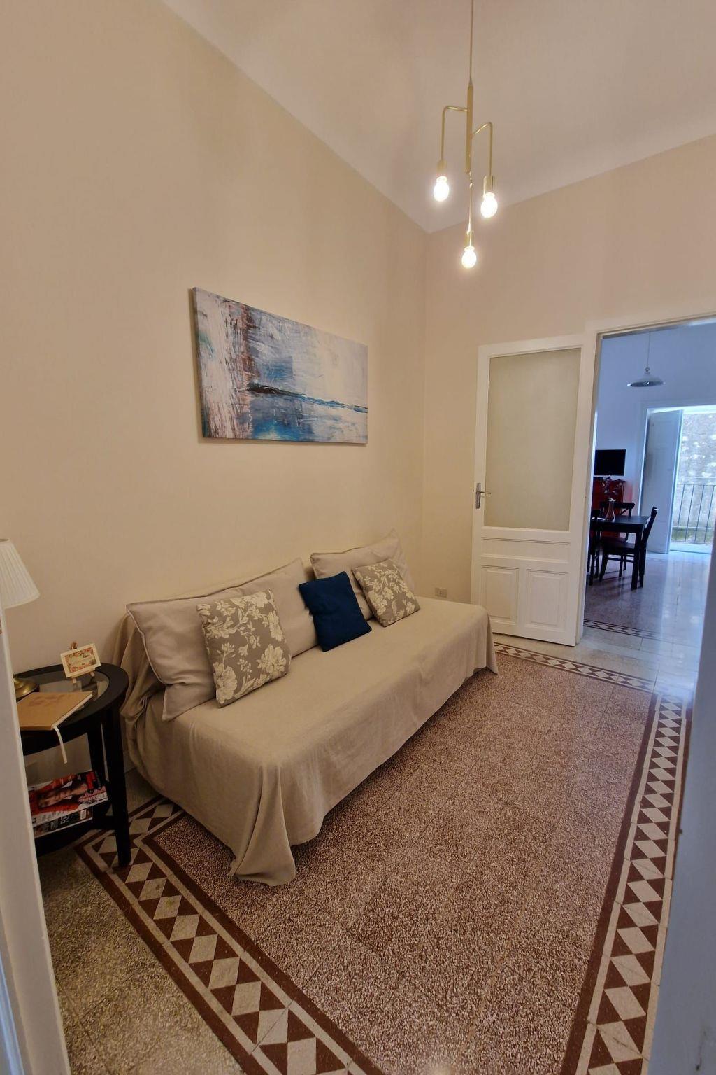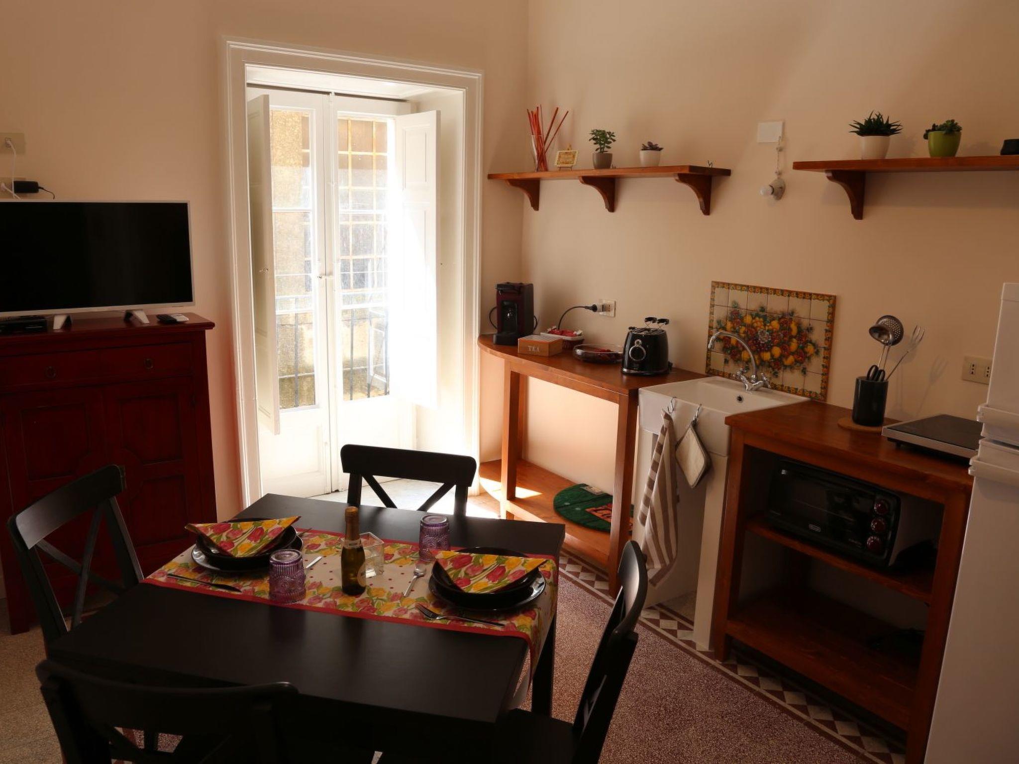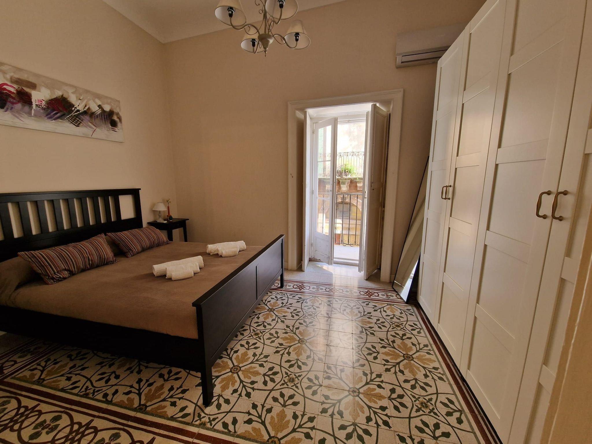 The flat of 55 square metres is located in a period building with a typically Sicilian taste, sober and elegant. The period cement flooring makes it cosy. It consists of a bedroom with a double bed, a large and capacious wardrobe, a large mirror and a balcony to admire the beauty of Ragusa; a bathroom with shower with window and an ante-bathroom with washing machine and washbasin. The kitchen is equipped with a kitchenette with induction hob, sink, crockery, espresso coffee machine, oven, fridge, kettle, toaster, iron and ironing board, LCD TV and free wi-fi. The living room is equipped with a comfortable sofa bed and reading corner. The flat is equipped with air conditioning and all the necessary comforts. A 10-minute walk and 5 minutes by public transport from Ibla.