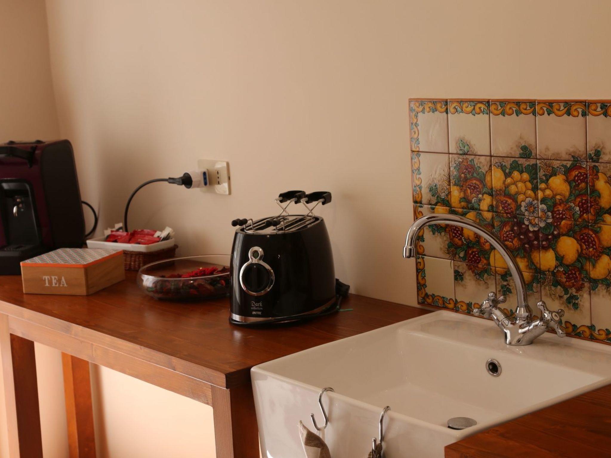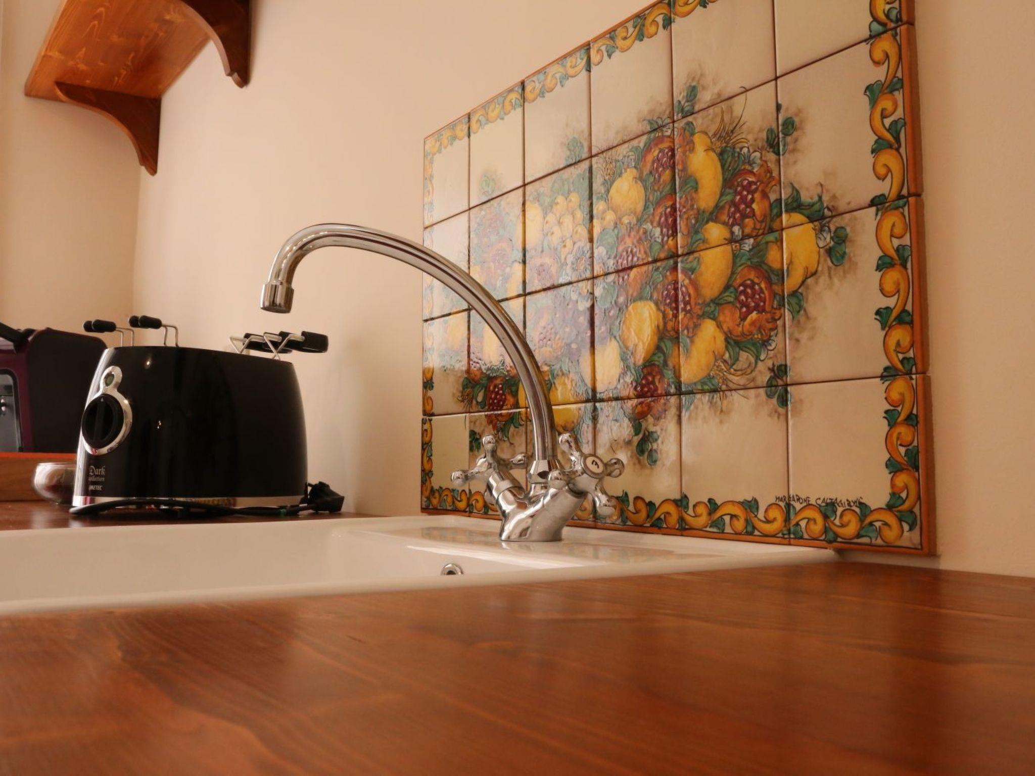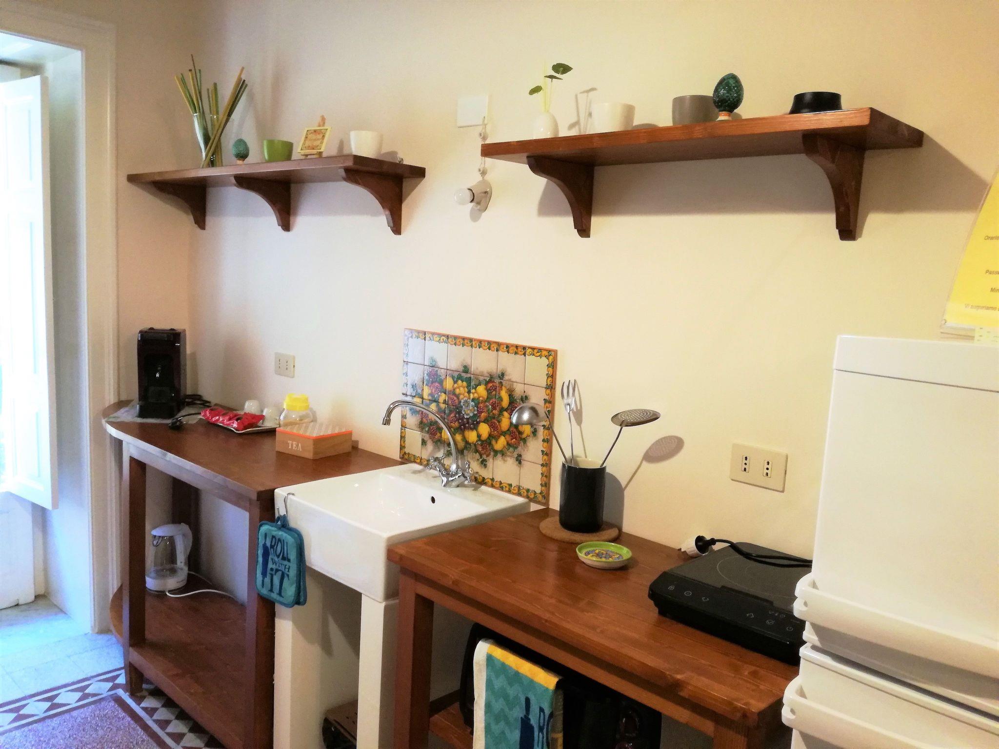 The flat of 55 square metres is located in a period building with a typically Sicilian taste, sober and elegant. The period cement flooring makes it cosy. It consists of a bedroom with a double bed, a large and capacious wardrobe, a large mirror and a balcony to admire the beauty of Ragusa; a bathroom with shower with window and an ante-bathroom with washing machine and washbasin. The kitchen is equipped with a kitchenette with induction hob, sink, crockery, espresso coffee machine, oven, fridge, kettle, toaster, iron and ironing board, LCD TV and free wi-fi. The living room is equipped with a comfortable sofa bed and reading corner. The flat is equipped with air conditioning and all the necessary comforts. A 10-minute walk and 5 minutes by public transport from Ibla.