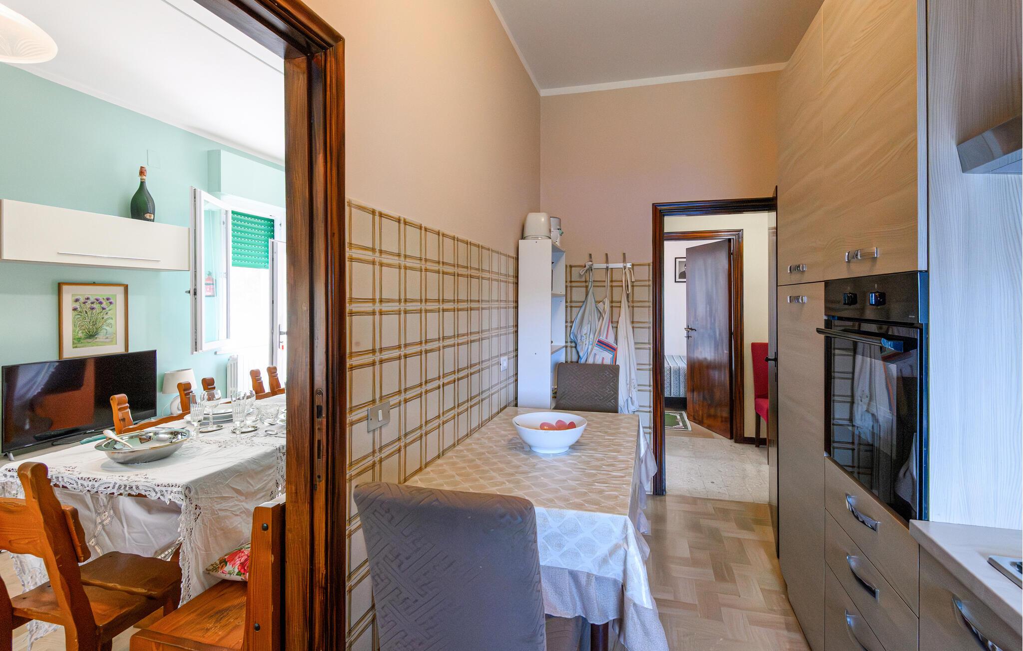 Flyt ind i denne skønne lejlighed med familien og hold en dejlig ferie. Her er der alt, hvad I skal bruge mellem strandturene i Marina di Sant'Angelo. Boligen er veludstyret med gode faciliteter, så I kan nemt kaste jer over madlavningen og senere samles om spisebordet til et lækkert måltid eller et brætspil.