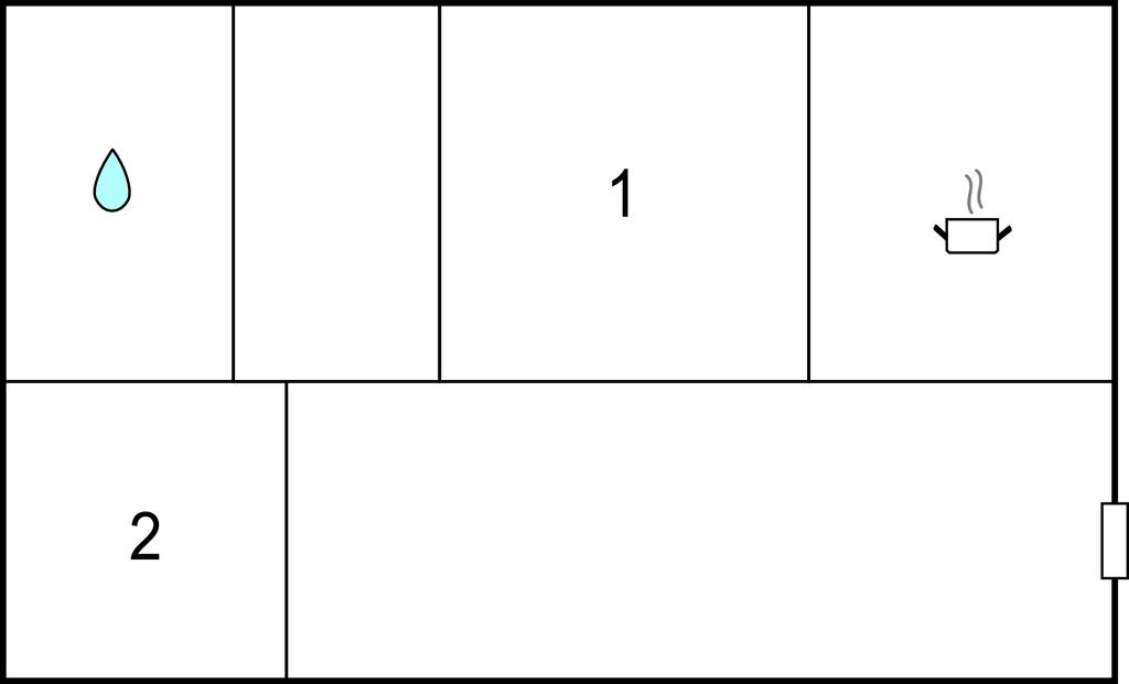 Badeværelse (nr. 1) - WC. Varmt og koldt vand. Badekar