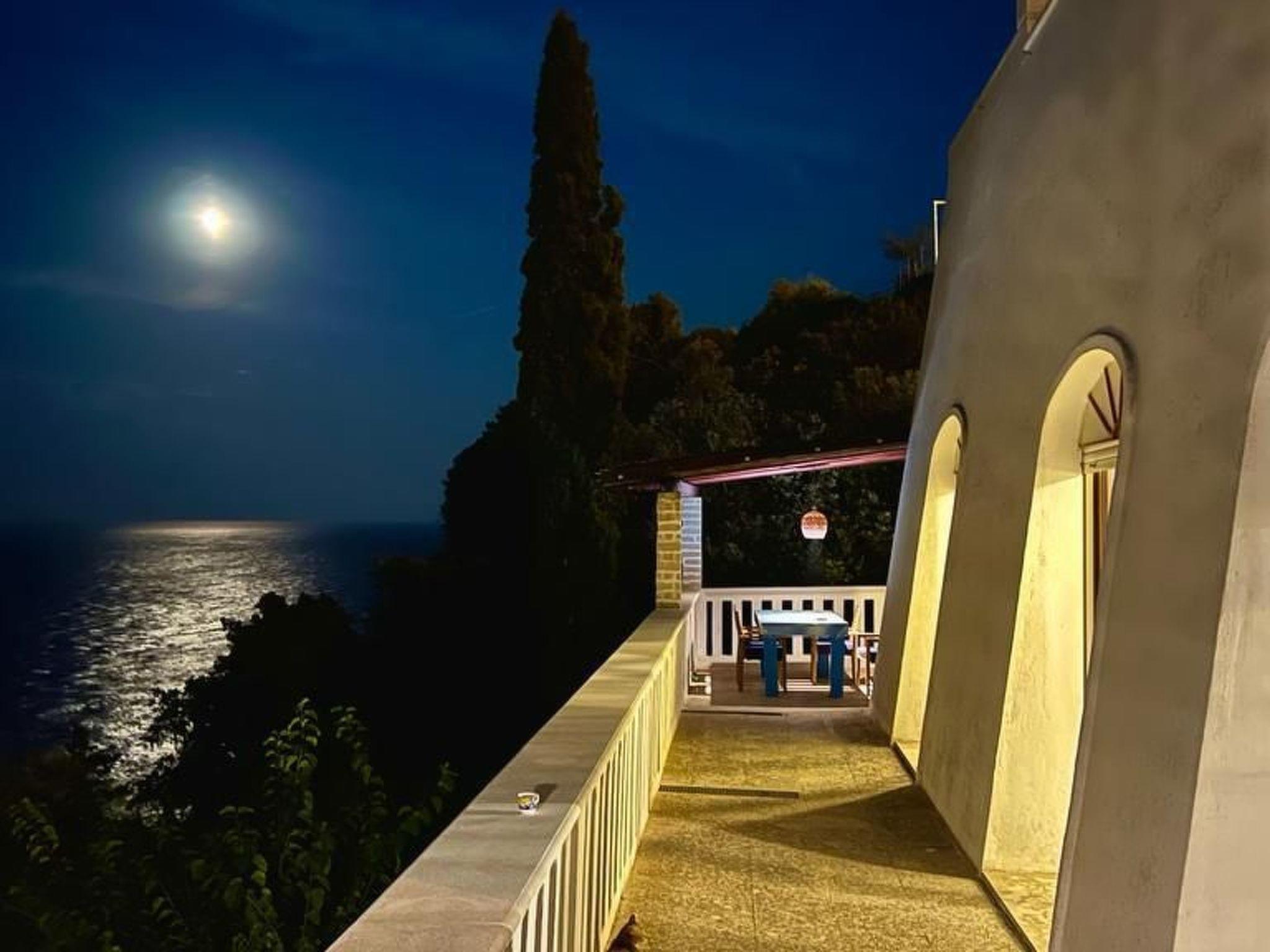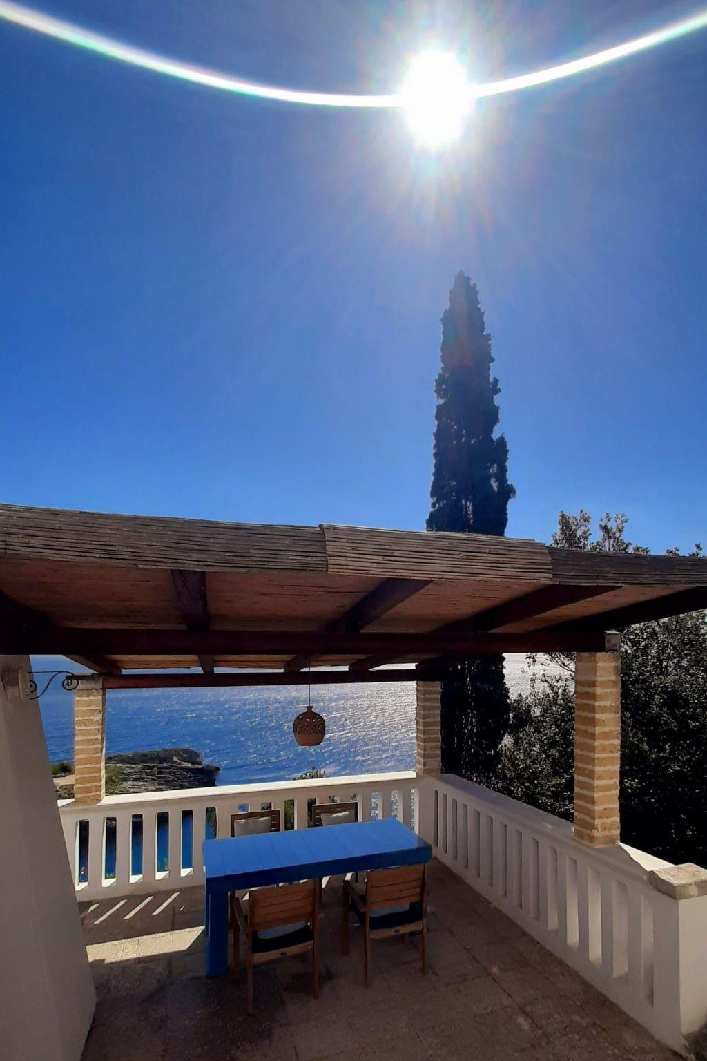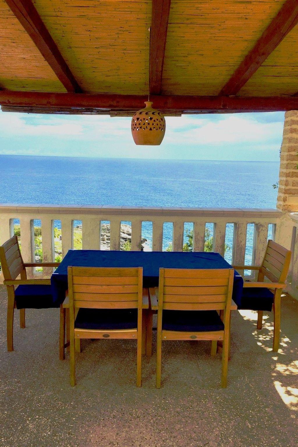 The terraces afford a lovely view of the sea and the creek and you can lie in the sun here or use the grill and dine outdoors. You can cool off under the outdoor shower and many loungers and a hammock invite you to relax. A roofed parking space is available for your car. The property has a swimming pool with sea view outside for common use.