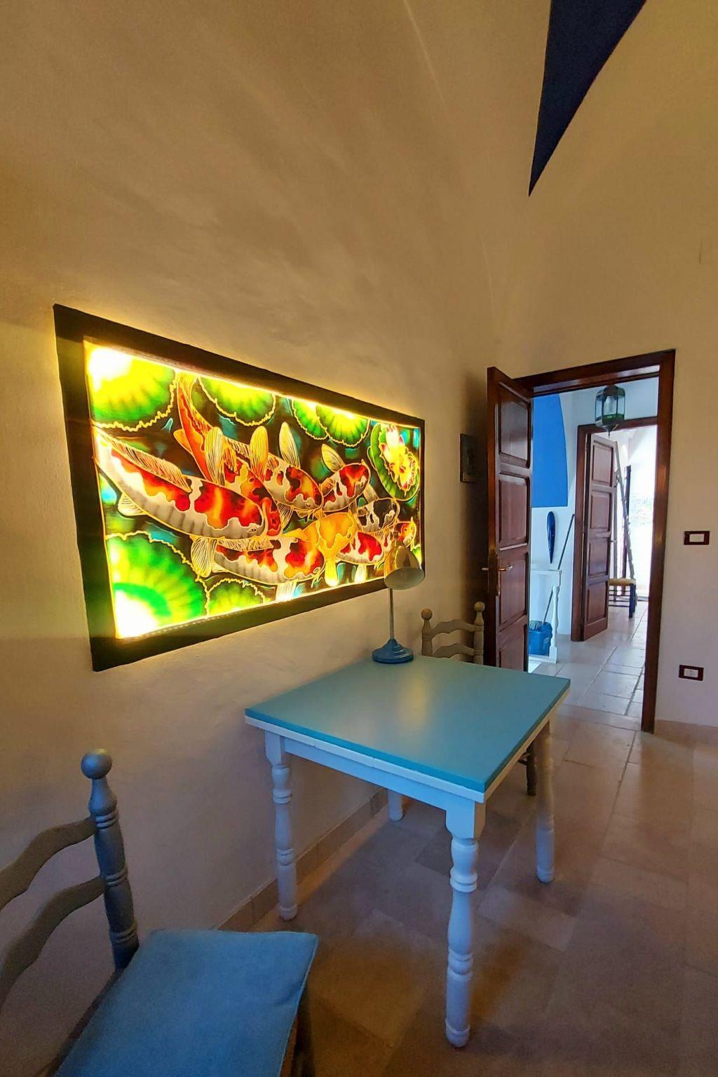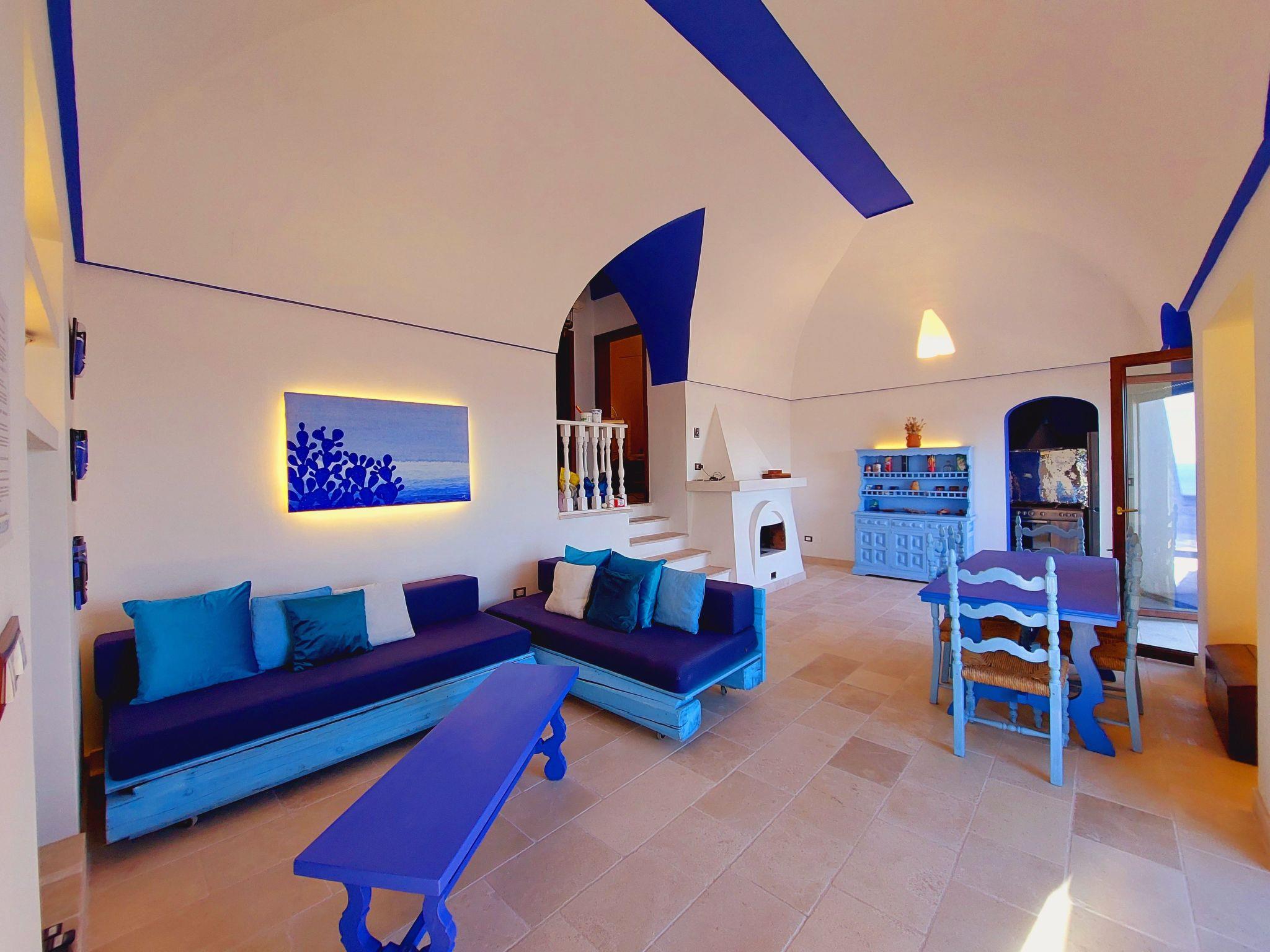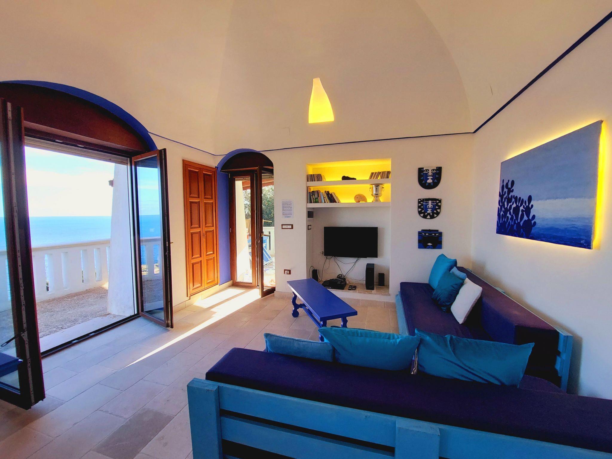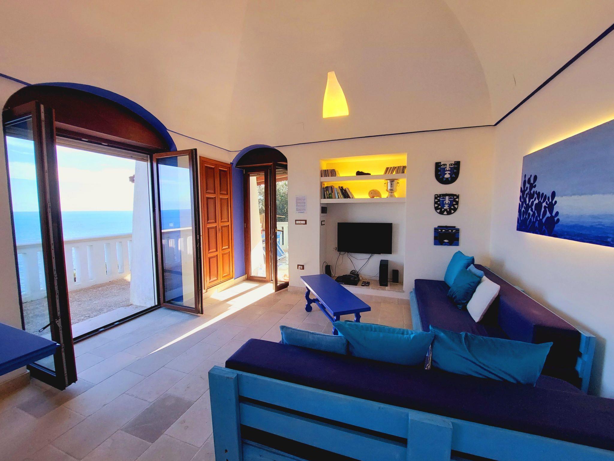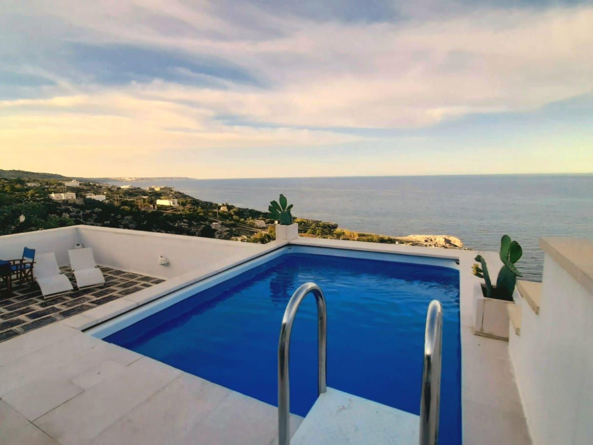 It is an ideal place for a holiday away from mass tourism, surrounded by the singing of birds and the sound of the sea. You can recharge your batteries here. You can swim in the sea, accessed along private steps, or visit one of the many beaches in the area. The area has a wealth of places worth visiting, such as Santa Maria di Leuca, Otranto, Gallipoli and Lecce with its famous sandy beaches and the baroque old town. Many grottoes, pine forests by sandy beaches and restaurants are waiting to be explored.