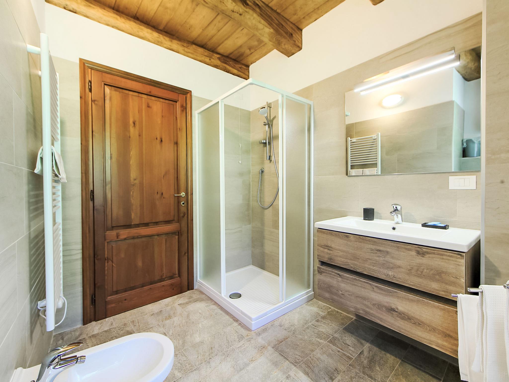 "Piano Rosso 2", 3-room apartment 60 m2 on 2 levels, on the ground floor. Practical and rustic furnishings: living/dining room with satellite TV (flat screen). Kitchenette (4 hot plates, dishwasher, toaster, kettle, microwave). Upper floor: 1 double bedroom. 1 room with 2 beds. Shower/bidet/WC. Panoramic view of the countryside. Facilities: children's high chair, baby cot for up to 2 year olds, hair dryer. Internet (WiFi, free). Maximum 1 pet/ dog allowed. Wood-stove heating in iall rooms. IT048026B5C7R6QKRF