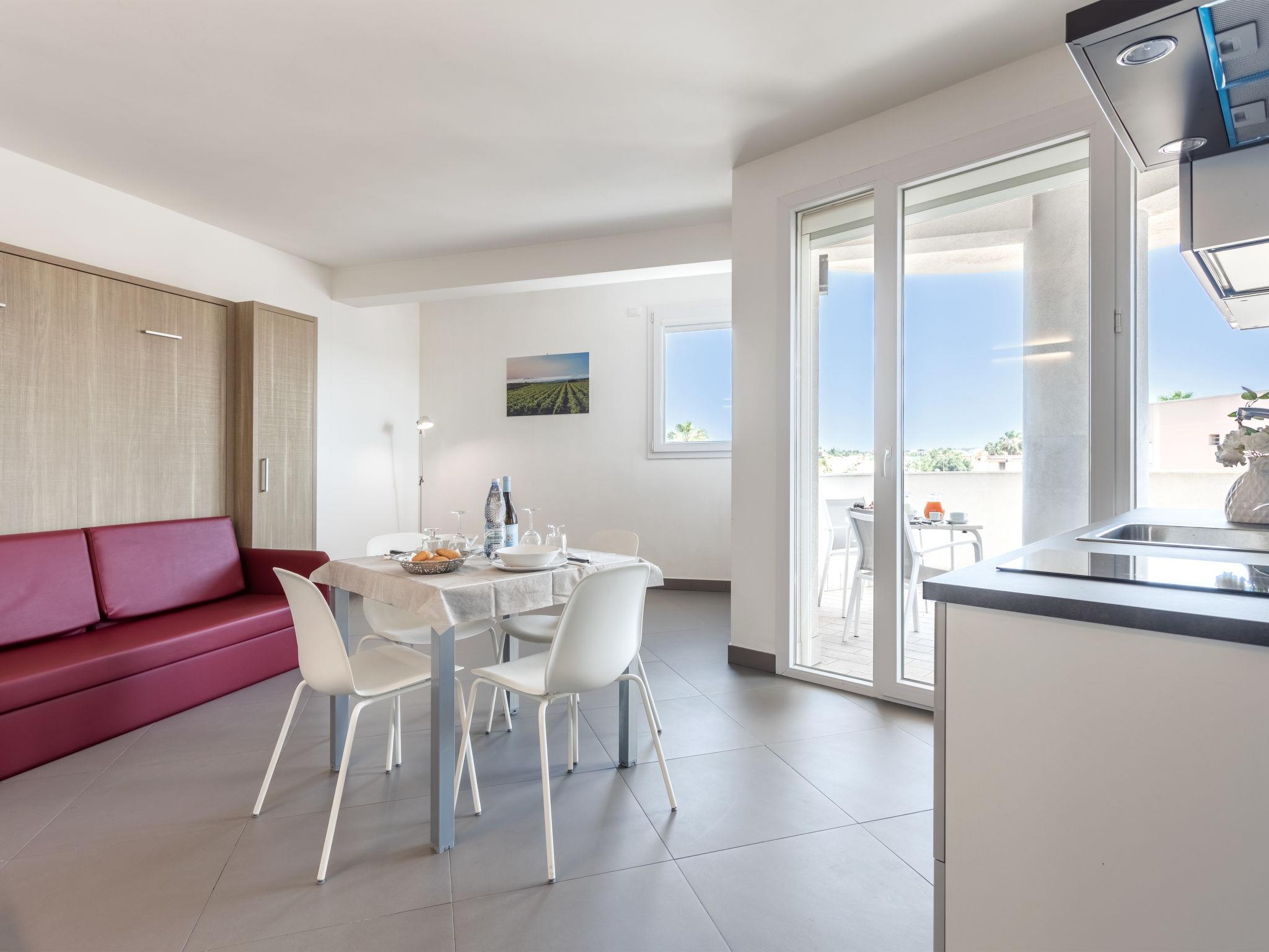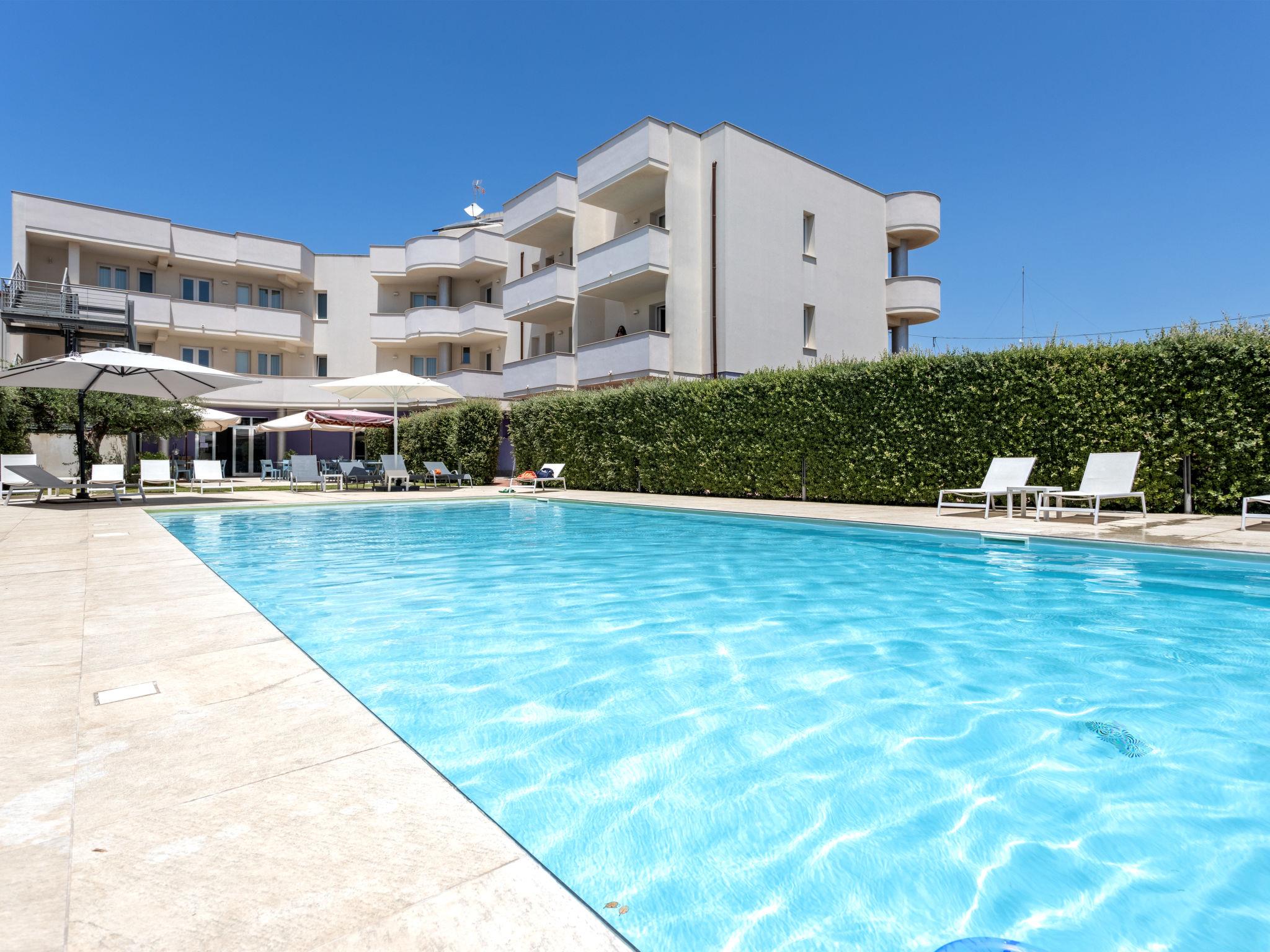 Aparthotel, built in 2019. 6 km from the centre of Marsala, in a sunny position, 1 km from the sea. For shared use: property 2'000 m2 (fenced), garden 50 m2, swimming pool (6 x 14 m, depth 140 - 160 cm, seasonal availability: 01.May. - 31.Oct.). Outdoor shower, garden furniture. In the complex: reception, bar, breakfast room, WiFi, lift, central heating system, air conditioning, laundry. Room cleaning daily (included). Breakfast on request (extra). Parking on the premises. Grocery 100 m, supermarket 1 km, restaurant 500 m, bar 200 m, bus stop 5 km, sandy beach "Lido Signorino" 3.5 km. Nearby attractions: Marsala porto Aliscafi per Isole Egadi 5 km, Marsala Saline, Museo del Sale 14 km, Trapani 33 km, Erice 50 km, Tempio Segesta ed Area Archeologica 50 km, San Vito lo Capo 50 km. Please note: car recommended. Reception open 09:00-18:00 hrs. Residence with electric gates.
