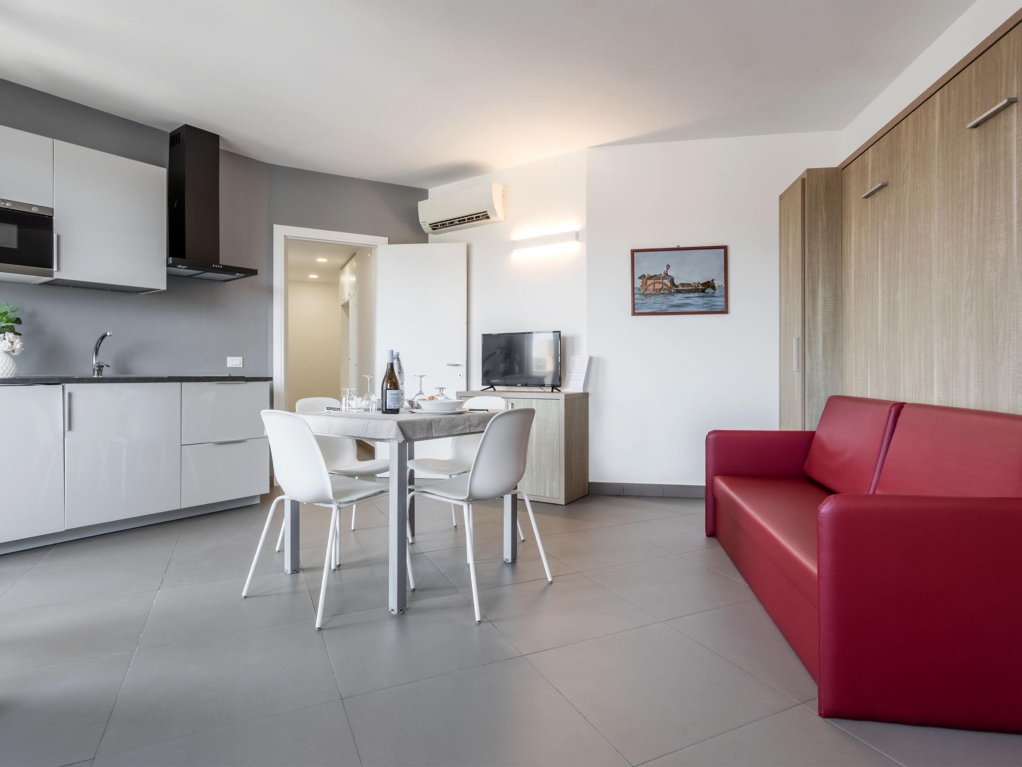 "Marsala Vergine Riserva", 2-room apartment 40 m2 on 2nd floor. Modern and tasteful furnishings: living/dining room with 1 double sofabed and TV (flat screen), air conditioning and forced-air heating. Exit to the balcony. 1 double bedroom with air conditioning and forced-air heating. Kitchenette (2 induction hot plates, microwave). Shower/bidet/WC. Heating, forced-air heating. Heating available only from 01.12. to 31.03. Small balcony, terrace 10 m2, roofed. Balcony furniture. Facilities: safe, baby cot for up to 2 year olds (extra), hair dryer. Internet (WiFi, free). Parking (1 car). Please note: smoke alarm, fire extinguisher. IT081011A15YLM7OVF