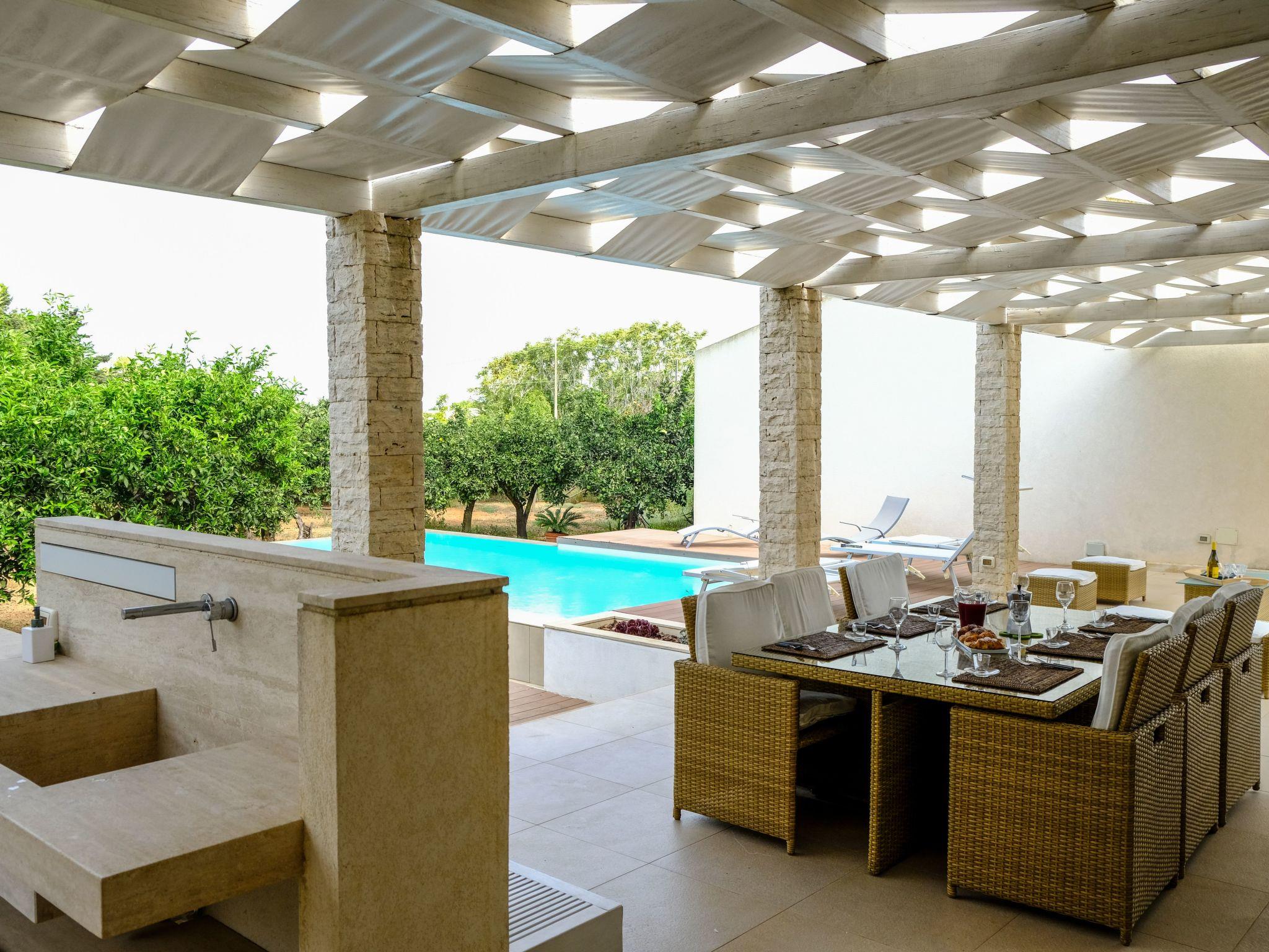 The house is surrounded by a fragrant citrus grove. The pool and patio are perfect for spending pleasant moments of relaxation in the open air.