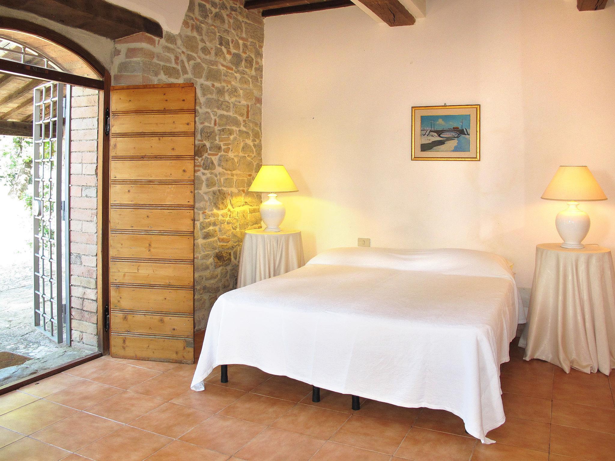 Beautiful country house "Casa Ingrid", detached, surrounded by fields. 15 km from the centre of Marsciano, 4 km from the centre of San Venanzo, 48 km from the centre of Perugia, in the countryside. Private: property 2 ha with lawn and wildlife garden, lawn for sunbathing, swimming pool (14 x 7 m, depth 120 - 250 cm, seasonal availability: 01.Jan. - 31.Dec.). Outdoor shower, pool maintenance by the owner/gardener. In the house: sauna (extra). Fitness room. 2.2 km long motor access (via unmade road). Parking on the premises. Shop 4 km. Local sale of farm products. Pool with mobile roofing (roofed until end of May/beginning of September, otherwise open), the roofing may only be operated by the owner.
