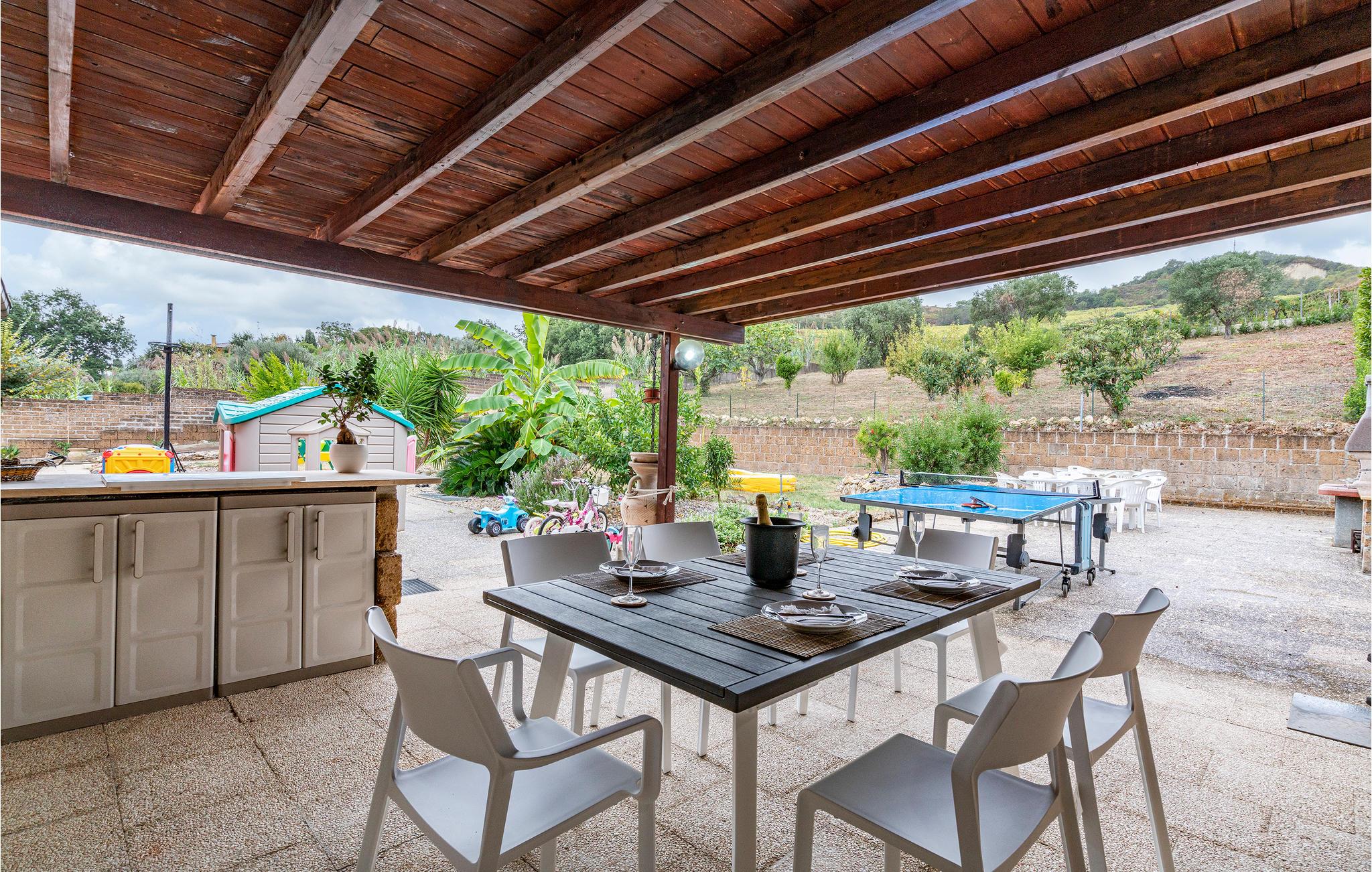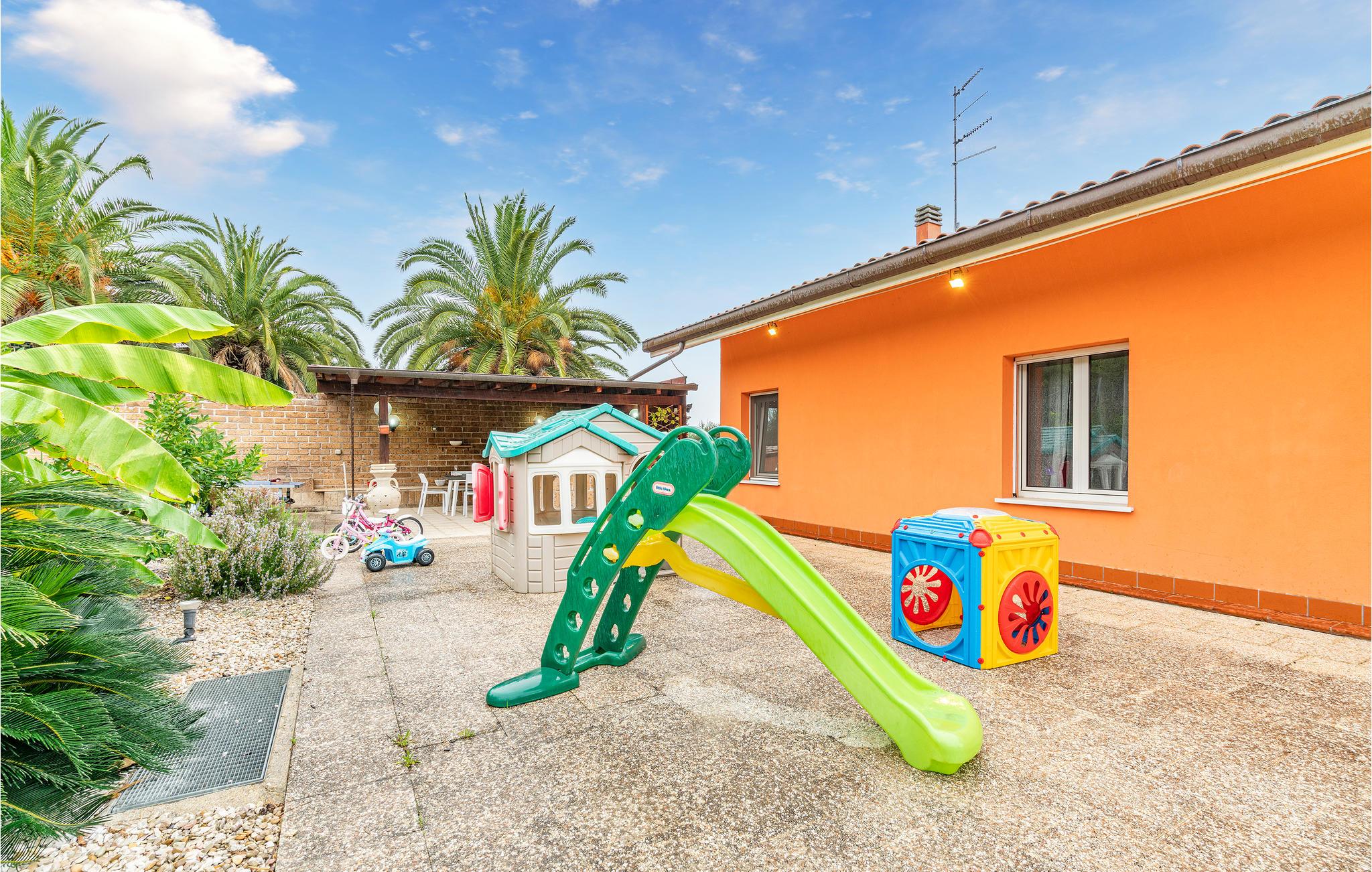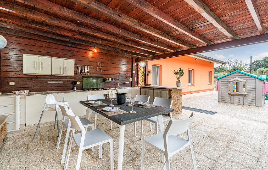 Dette rummelige feriehus med en stor have tilbyder masser af plads og variation til en hyggelig familieferie eller en ferie med venner. Slap af på den store, overdækkede terrasse, hvor I kan nyde det vidunderlige italienske klima hele dagen. Terassen er også det perfekte sted at spise morgenmad og afslutte dagen med et glas vin. Der er et udendørskøkken med grill til rådighed til hyggelige grillaftener. Der tilbydes variation og underholdning med et billardrum, fitnessudstyr og sportsaktiviteter for både unge og gamle. Den store, private have er helt indhegnet.