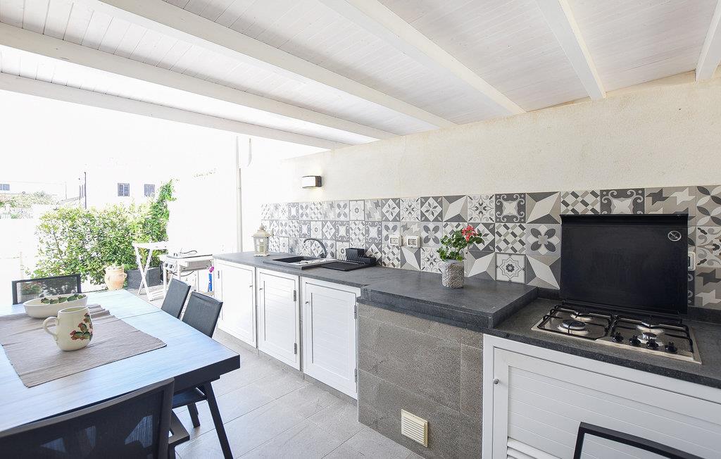 På de varme dage, og dem er der mange af her, kan I nyde jeres måltider i det fri og tilberede dem i det skønne udendørs køkken. I løbet af dagen kan I nyde solen og den friske havluft i den velholdte have med blomster og palmer eller på de skyggefulde verandaer.