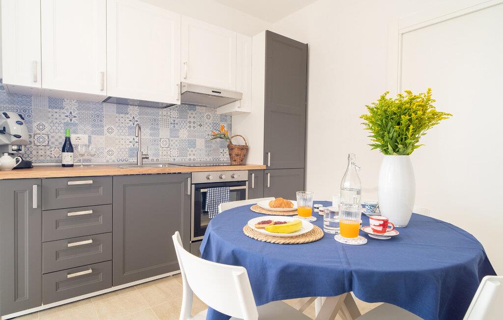 Denne lyse og indbydende lejlighed ligger kun få skridt fra stranden og venter på jer til en afslappende ferie. Planlæg dagens aktiviteter, mens I nyder friskbagt panini ved det indbydende spisebord, tilbered middelhavsretter med friske råvarer fra markedet og nyd en fredelig spilleaften efter en lang dag.
