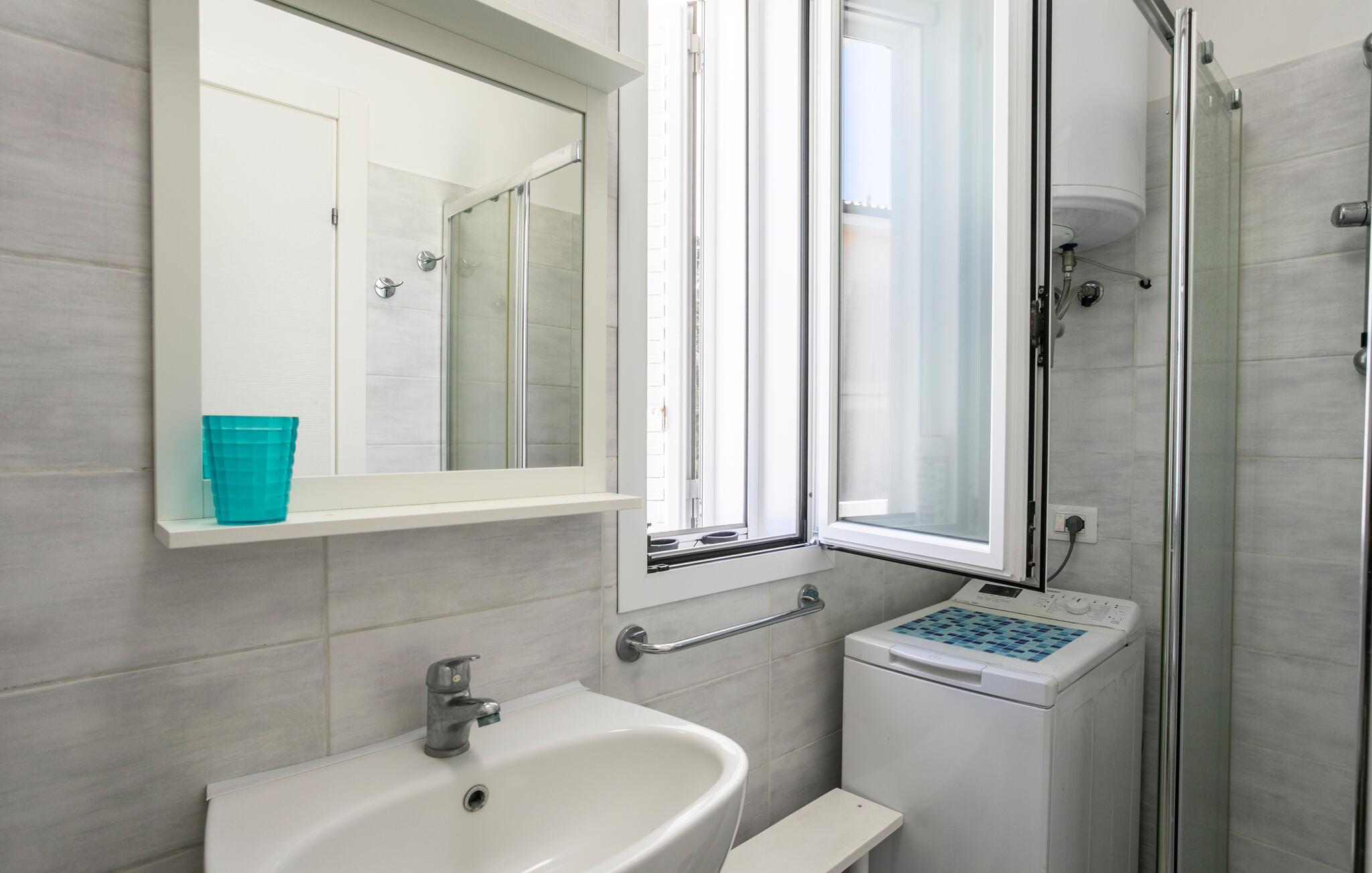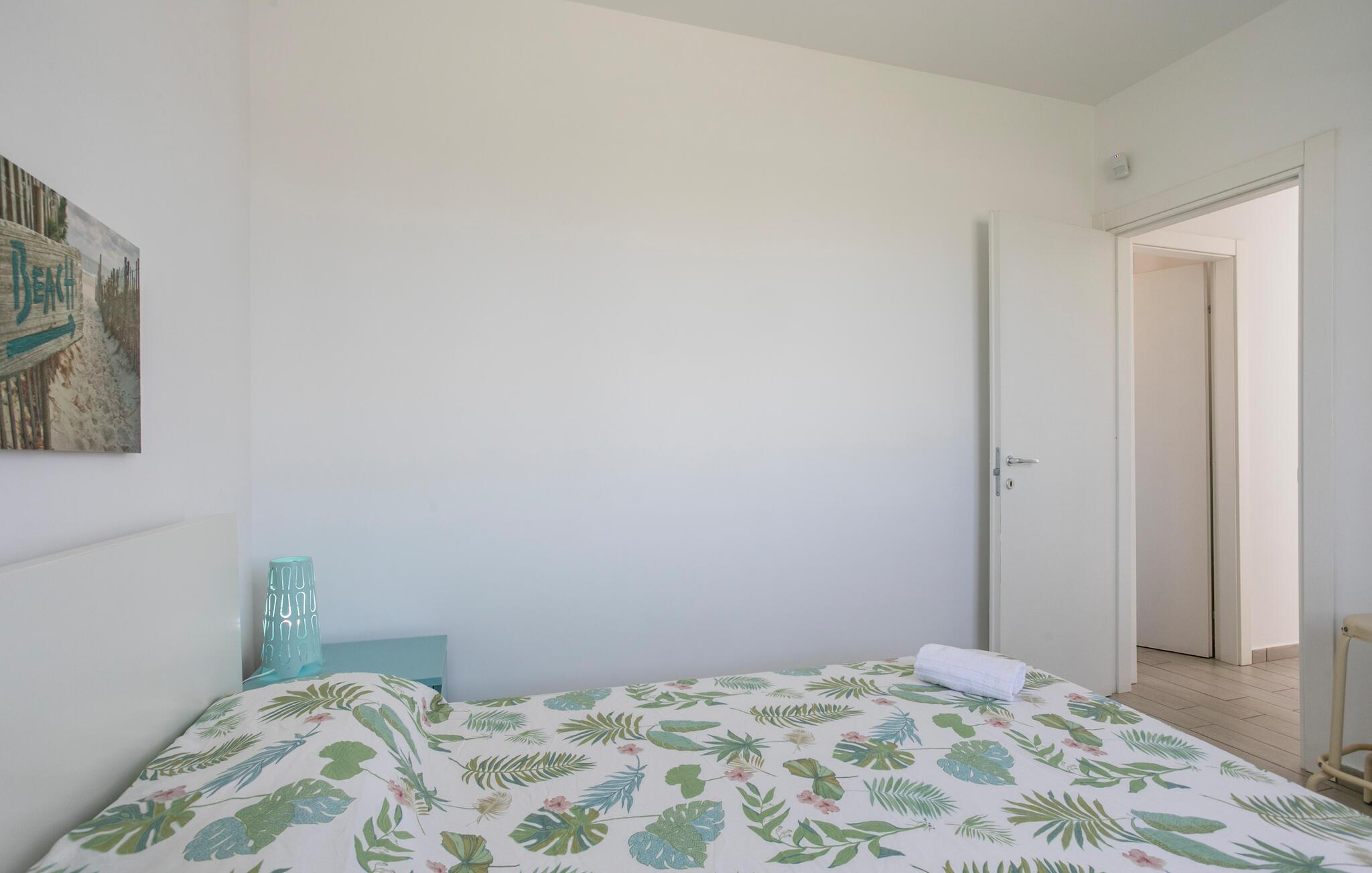 Tilbring solrige dage i denne ferielejlighed med spabad og havudsigt tæt på stranden.