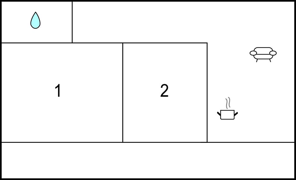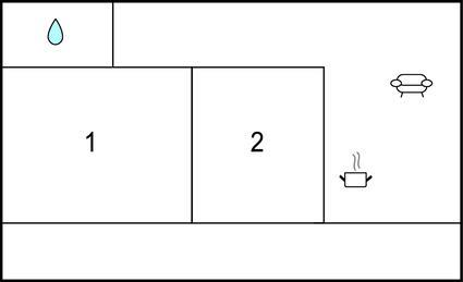 Opholdsstue/køkken 16m2 - 2 Sovepladser. (Sofa, madras eller lignende).