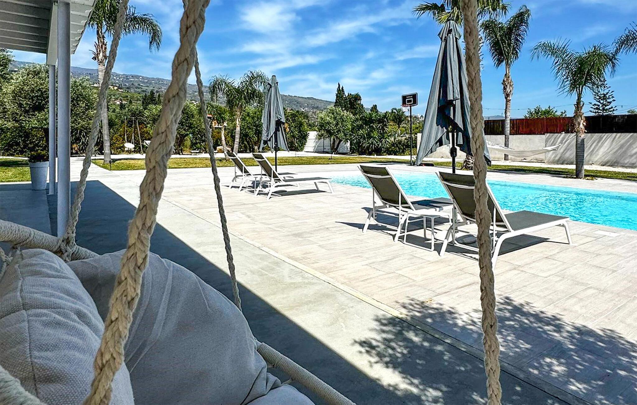 På terrassen, hvor I kan skimte Middelhavet glitre i horisonten, venter en forfriskende pool. Slap også af i hængekøjen og nyd udsigten til det omkringliggende bjerglandskab.