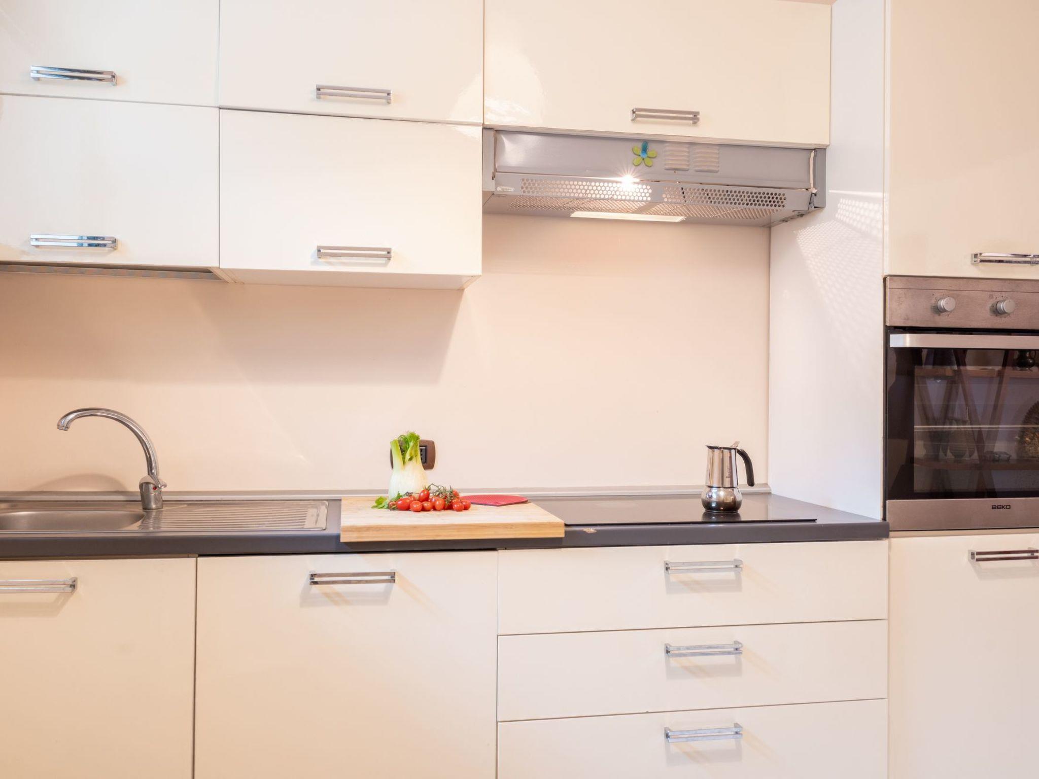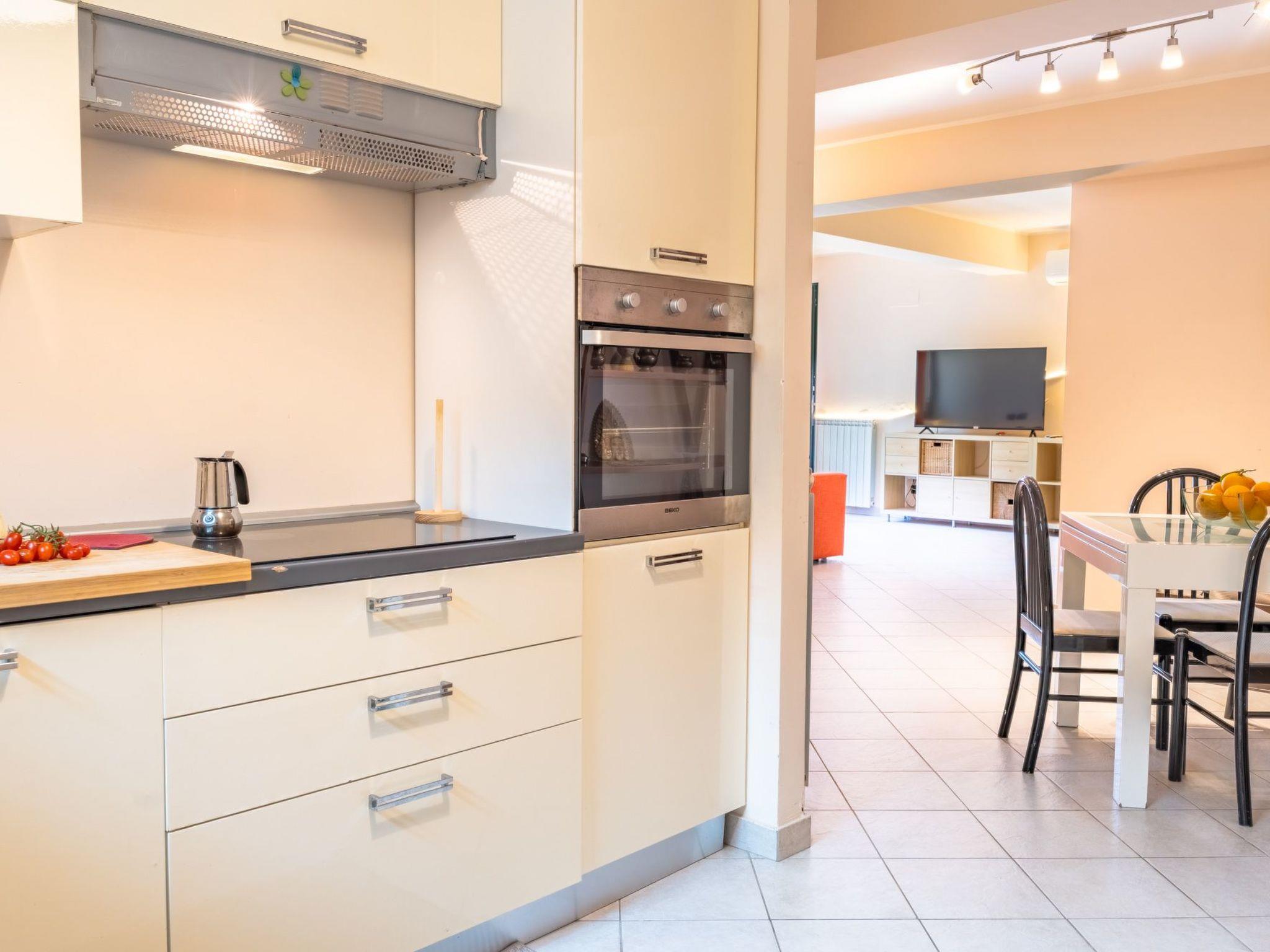 The open-plan, well-appointed basement is furnished with a sofa bed, while the master bedroom has a double bed and a cot for an additional guest. The complete kitchen is equipped with a dishwasher, oven, induction hob, fridge and freezer, ideal for those who like to cook even on holiday.