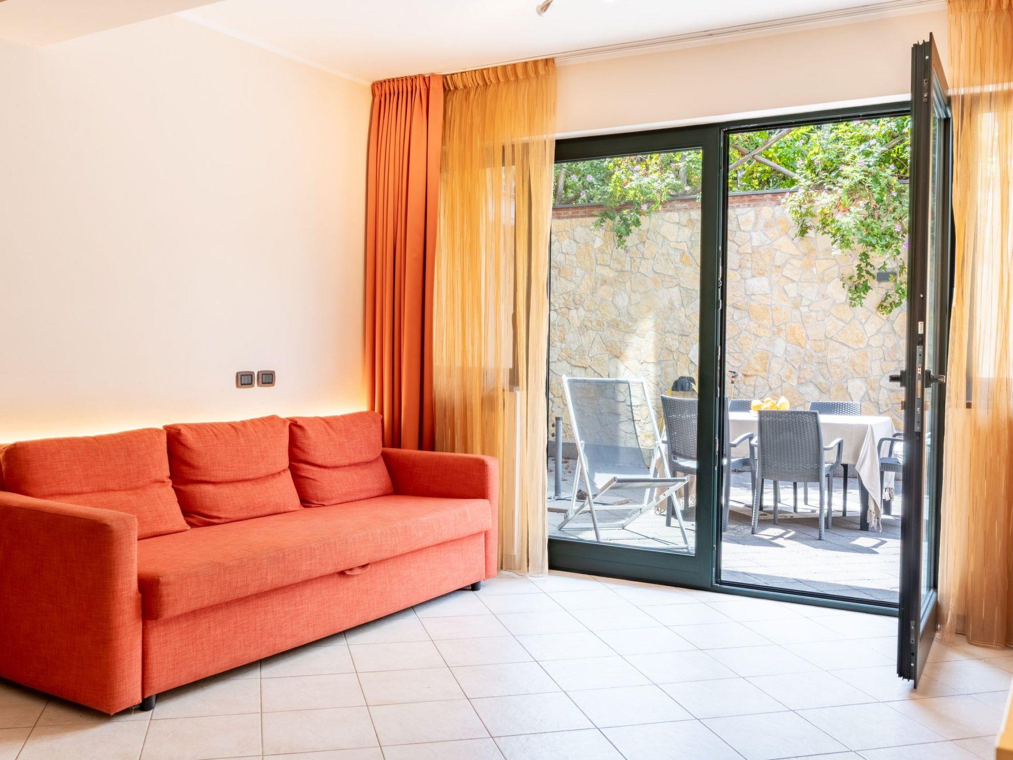 Outside, you will find a private area with chairs and parasols, perfect for relaxing in the fresh air.
