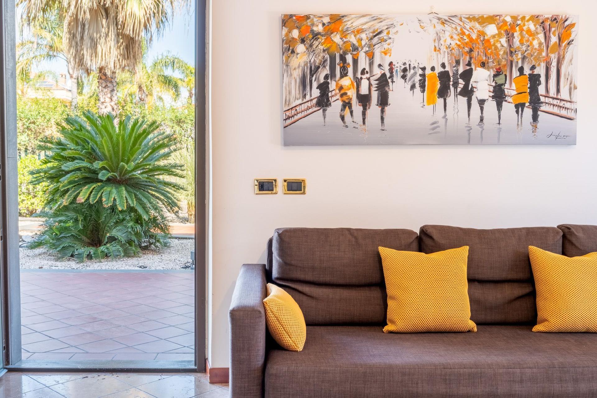 Just 5 minutes from the centre of Riposto, you can stroll along the picturesque marina and the seafront promenade, full of restaurants, pizzerias and pubs where you can enjoy local specialities. The strategic location will allow you to easily explore some of Sicily's most iconic destinations, such as Taormina, Catania and the majestic Mount Etna, whose imposing profile can be seen directly from our garden.
