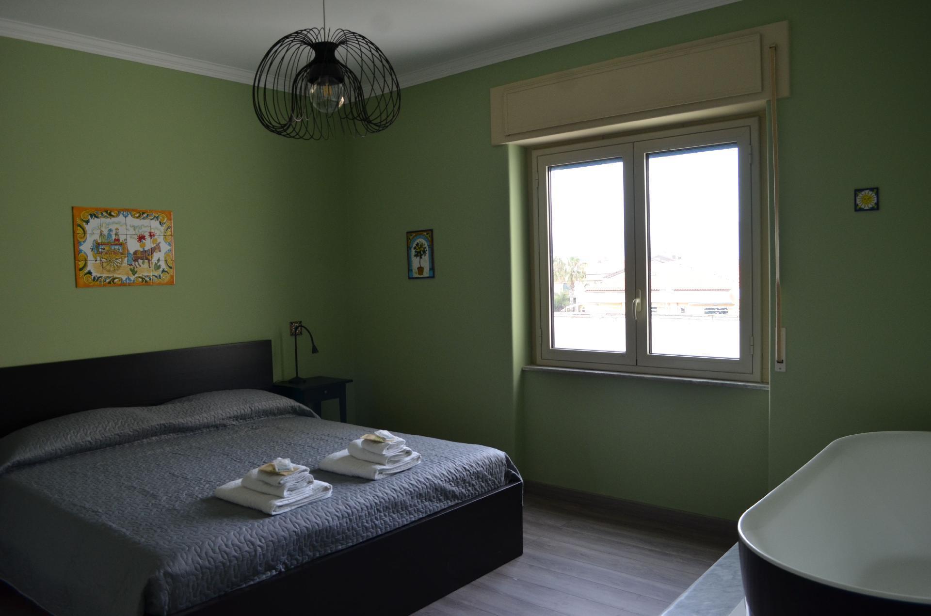 Internally, Suite Etna is distinguished by its elegance and functionality. On the third floor of a building facing the sea (no lift), guests are welcomed into a refined environment that includes a living area with a fully equipped kitchen, a comfortable sofa bed (140x190) ideal for resting, an air-conditioned bedroom with a large king-size bed (180x200), and a modern bathroom with shower. Comforts such as free Wi-Fi, air conditioning, smartTV 50", a washing machine, and a variety of kitchen utensils guarantee a pleasant and carefree stay.
