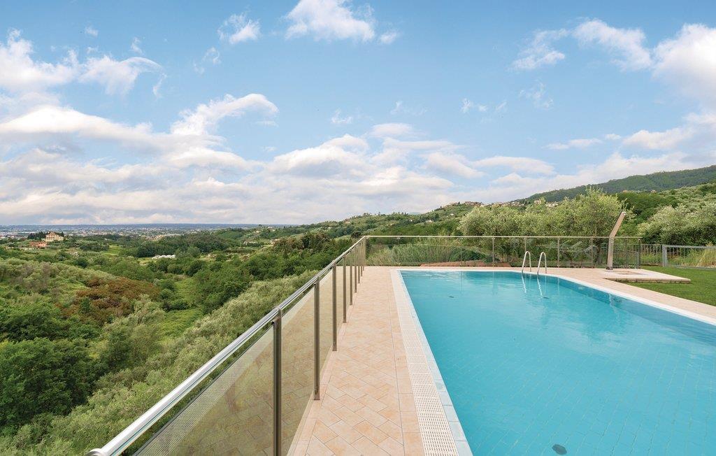 Dette imponerende, charmerende og pænt møblerede to-familieshus ligger nær Massa e Cozzile (1,2 km) på en bjergskråning med panoramaudsigt over en bred dal med oliventræer og bakket landskab. Foran huset er der en velplejet, indhegnet græsplæne med pool og smuk udsigt. Der er også en overdækket terrasse (30 m²) med bord til udendørs spisning. Den tilstødende del af villaen er uafhængig og er ikke beboet i øjeblikket. Udflugter: 5 km til Montecatini (kurbade, sportsfaciliteter og alle slags butikker), 25 km til Lucca med de imponerende bymure, smukke kirker og pladser, herunder den berømte Piazza dell 'Anfiteatro. Den charmerende by Pistoia ligger ca. 25 km fra ejendommen. Her finder I den smukke Piazza Duomo, domineret af et gammelt klokketårn. De smukke, brede sandstrande på Versiliakysten er ideelle til familier med børn (45 km). Kurbade med massage, bassiner og huler med mulighed for dykning 10 km. På forespørgsel (mindst 10 dage i forvejen) er det muligt at arrangere en kok til aftensmad med specielle menuer.
