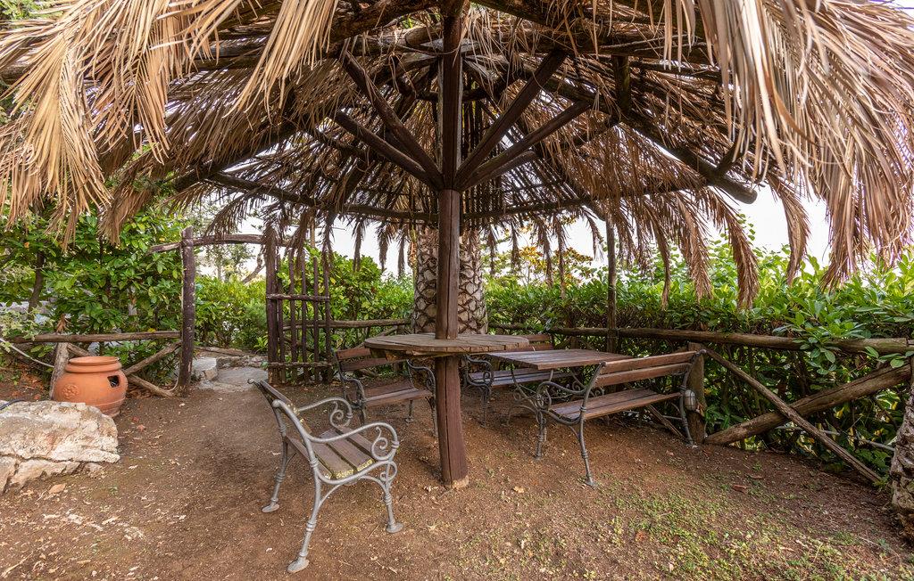 Udendørsområdet indbyder til afslapning. Hver af ferieboligerne i ejendommen har sin egen private haveafdeling eller terrasse. Benyt siddepladserne til hyggelige måltider under åben himmel, eller slap af i skyggen under pergolaen. Poolen, som I deler med de øvrige gæster, giver en forfriskende mulighed for at køle af på varme dage.