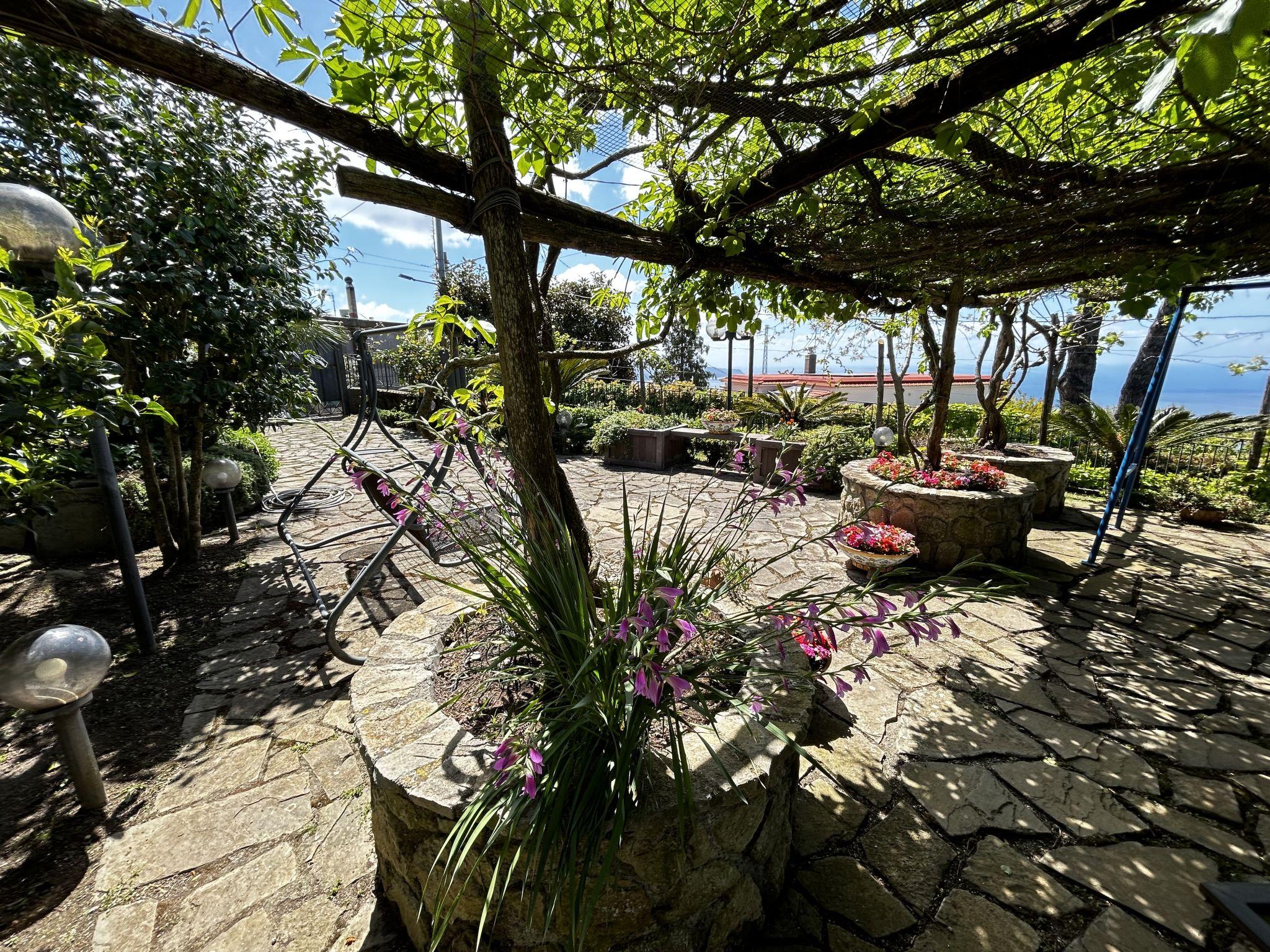 Sant'Agata sui 2 Golfi 7 km from Sorrento: Rustic, historical terraced house "'O pignatiello", from the 18th century, surrounded by trees. In the resort 2 km from the centre of Sant'Agata, in a sunny position on top of a hill, 7 km from the sea, 7 km from the beach, in the countryside. Private: garden 100 m2 (fenced) flowers and trees. Pergola, garden furniture, barbecue. 1 km long narrow motor access to the house. Width of access road: 210 cm. Parking at the house. Parking space or garage only for small to medium-sized cars. Shop 2 km, supermarket 2 km, restaurant 2 km, bar 2 km, bus stop "SITA to Sorrento" 2 km, railway station "Sorrento" 9 km, ferry "Sorrento" 9 km, sandy beach "Meta Alimuri" 12 km pebble beach "Marina del Cantone" 7 km, diving center 7 km, thermal baths 7 km. Marina 7 km. Nearby attractions: Positano 15 km, Amalfi 35 km, Pompei 30 km, Napoli 60 km, Capri, Ischia. Please note: car recommended. Baby equipment on request (extra). The keys‘ handover takes place by the agency Interhome in Sant'Agnello, 10 km.
