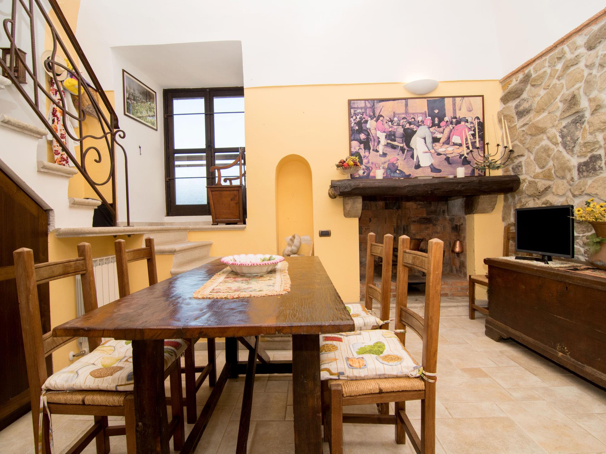 4-room house 100 m2 on 2 levels. Comfortable and rustic furnishings: living/dining room with open-hearth fireplace, dining table, kitchen corner and TV. Exit to the patio. Small, open kitchen (4 hot plates, microwave, freezer). Shower/bidet/WC. Gas heating (extra). Heating available only from 01.11. to 31.03. Upper floor: living room with panoramic window with dining table, bar, TV and DVD. 1 double bedroom with panoramic window. 1 small room, on 2 levels with 2 beds. Shower/bidet/WC. Garden 100 m2. Terrace furniture, barbecue. Panoramic view of the sea, the countryside and the resort. Facilities: washing machine. Internet (WiFi, free). Parking (fenced). Suitable for families. Please note: use of the first floor’s internal wooden staircase is prohibited, as indicated by signage. IT063044C2AUYZKW6H