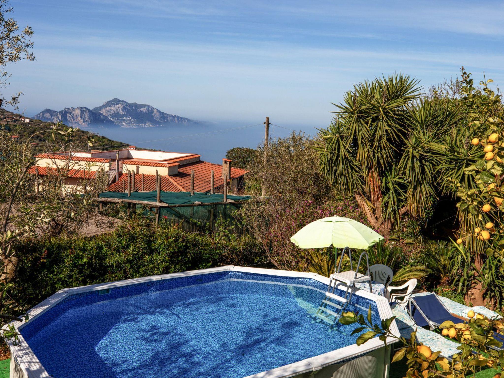 Nestled in the peaceful countryside of Massa Lubrense, Raggio di Sole is a detached house with a private garden of about 500 square metres, a children's play area, and a swimming pool for exclusive use with a view of the island of Capri and an outdoor dining area and barbecue.