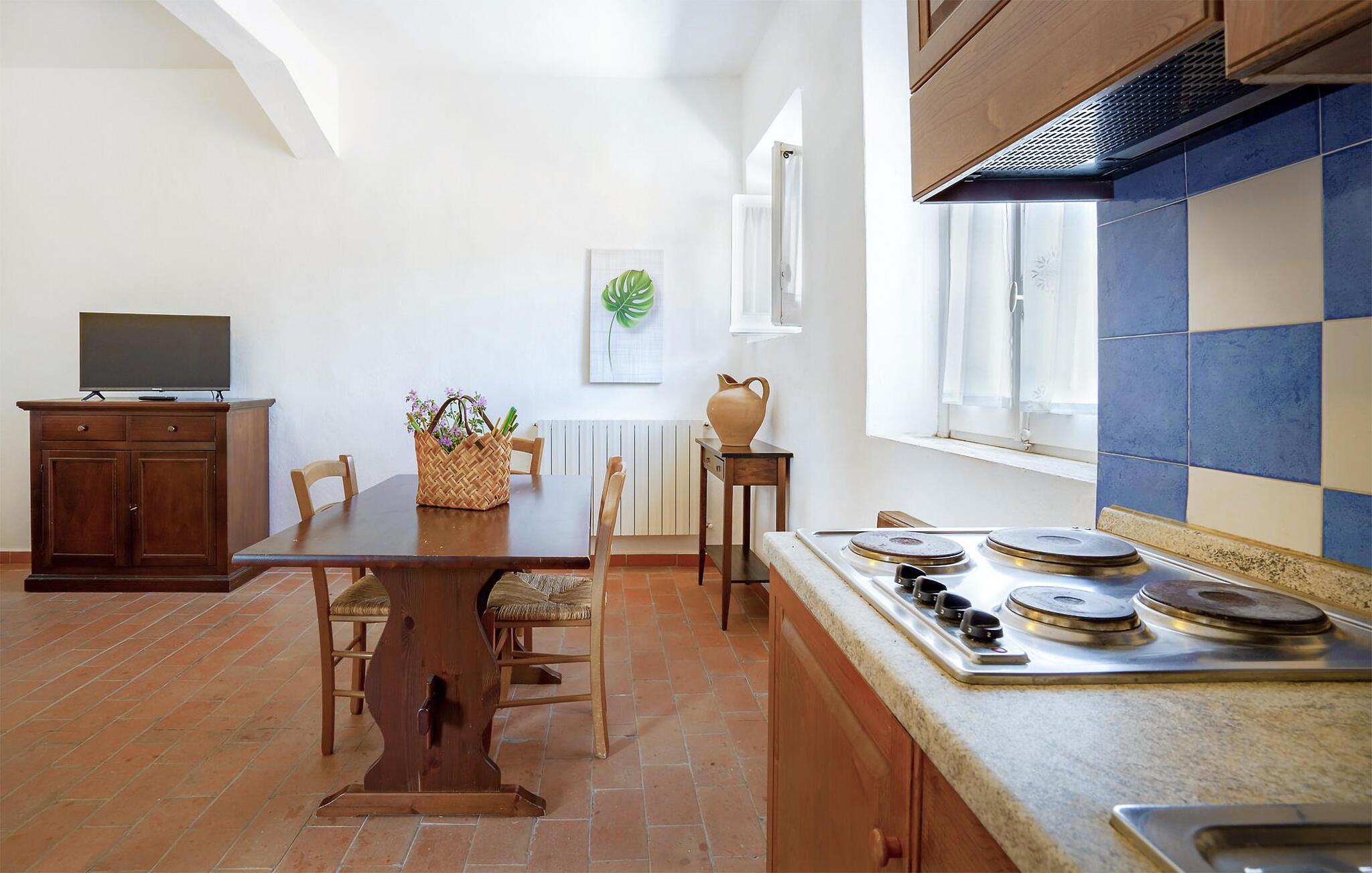 Kom ind og gør jer godt tilpas i den lyse, rustikke stemning i denne smukke ferielejlighed. Eksperimenter med pasta og friske krydderurter i det charmerende landstedskøkken og slap af i sofaen om aftenen med en god film.