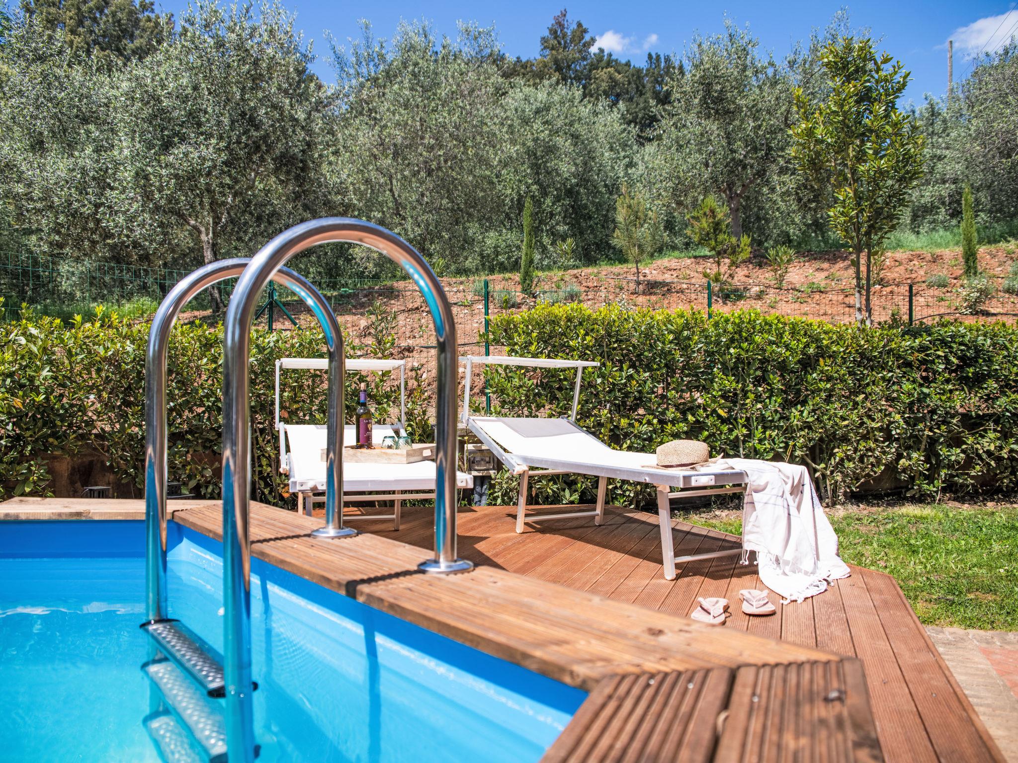 Cosy house "Olivo". 5 houses in the residence. In the district of La Pesta 9 km from the centre of Massa Marittima, in a sunny position on top of a hill, 17 km from the sea, 1.5 km from the lake, 17 km from the beach, in the countryside. Private: garden with wildlife garden, meadow, swimming pool (above ground) round (3 m diameter, seasonal availability: 15.May. - 30.Sep.). Outdoor shower, parking on the premises. Shop 5 km, grocery 5 km, supermarket 10 km, restaurant, bar 500 m, bicycle rental 10 km, bus stop "La Pesta" 500 m, sandy beach "Follonica" 9 km. Marina 22 km, golf course (18 hole) 15 km, surf school 20 km, minigolf 20 km, walking paths from the house 50 m. Nearby attractions: Valpiana 5 km, Gavorrano 14 km, Follonica 9 km, Cala Violina 25 km, Roccastrada 20 km. Well-known lakes can easily be reached: Lago dell'Accesa 1.5 km. Hiking paths: Riserva Naturale di Montioni 15 km. Please note: car recommended.