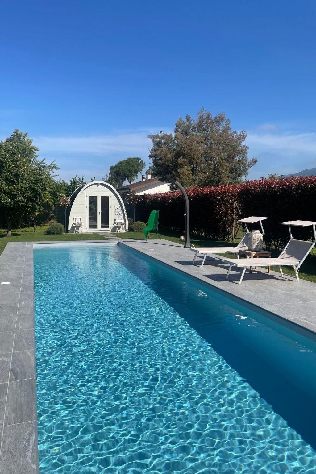 Location. Beautiful holiday home in a quiet location, with a large garden, very well maintained down to the last detail. The house has a large swimming pool (14 m x 3 m x 1.5 m deep) for swimming, a whirlpool and of course a lovely terrace. The property, which is well fenced, can be reached via a small road and access is through an electric gate. On the plot you can enjoy the beautiful garden, the terrace and of course the brand new and well maintained swimming pool. There is also a gazebo in the pool area.