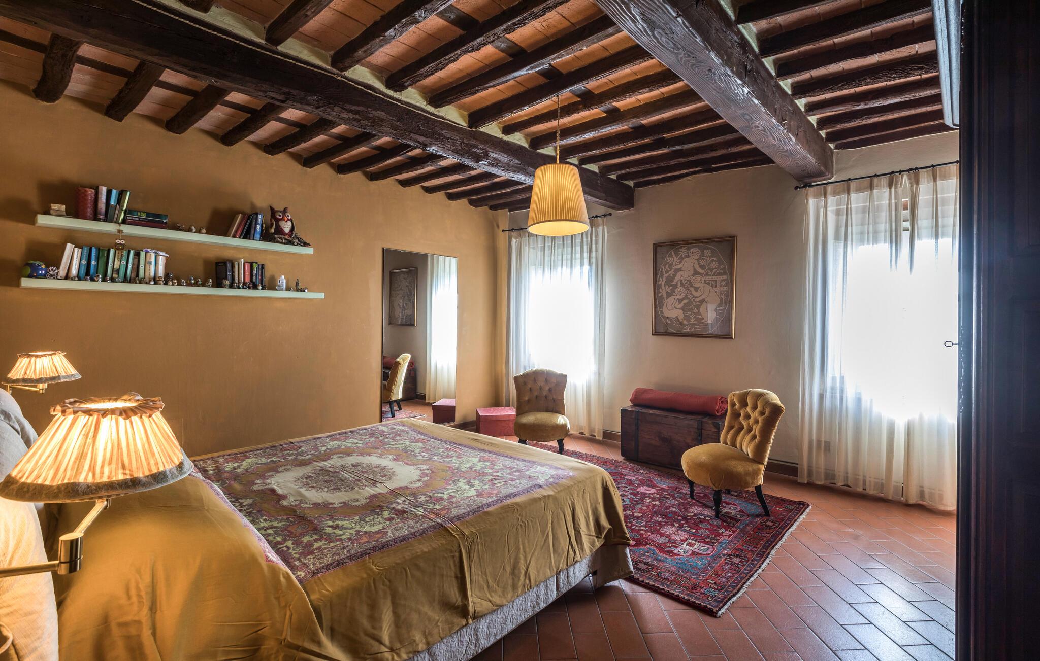 I dette karakterfulde hus blandes historisk stil og moderne komfort harmonisk. Imponerende træbjælkelofter, synlige murstensbuer og rustikke møbler skaber en atmosfære, hvor I hurtigt vil føle jer hjemme. Kærligt udvalgte detaljer tilføjer et personligt præg. Uanset om I slapper af på sofaen med en kop kaffe eller laver mad sammen i køkkenet, vil I hurtigt glide ind i ferietilstand.