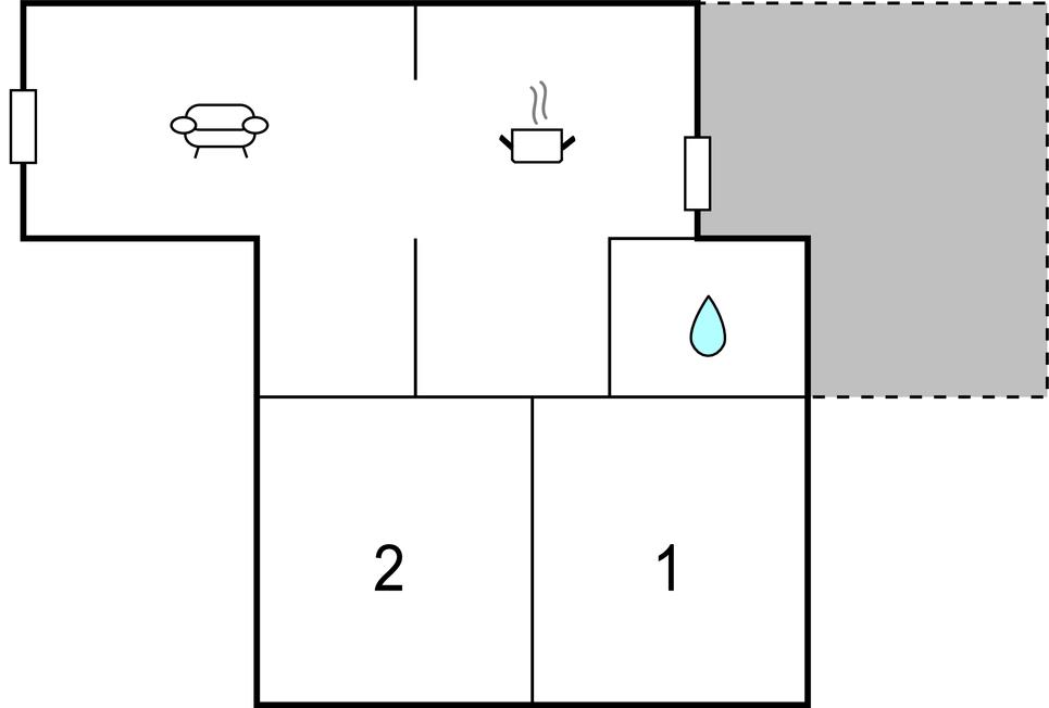 Opholdsstue/køkken - 1 Soveplads. (Sofa, madras eller lignende).