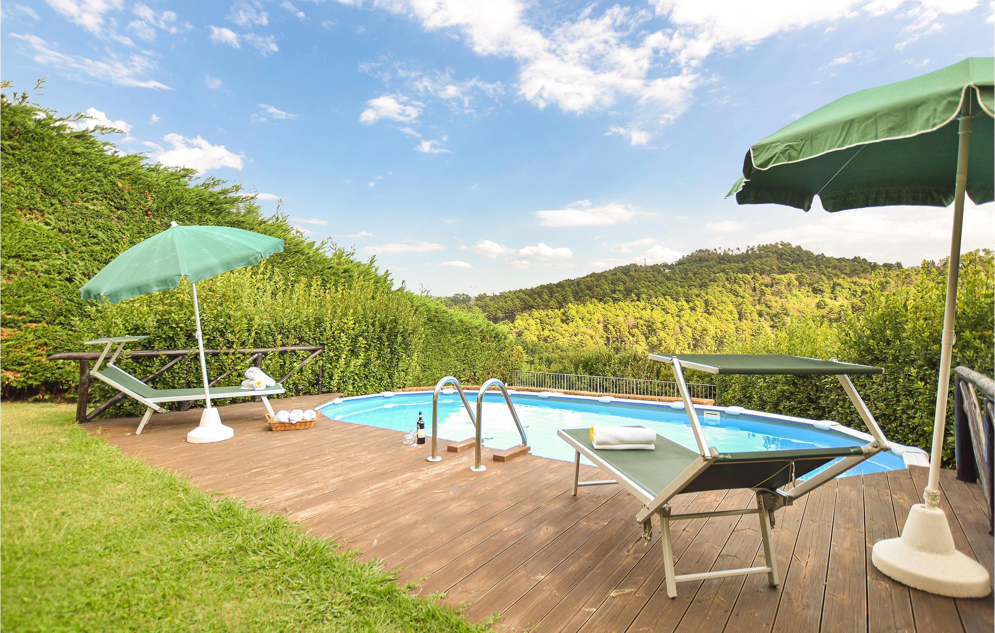 Denne moderne del af et tofamiliehus ligger i bjergene i Massarosa og tilbyder en vidunderlig udsigt over Versilia-søen og Massaciuccoli-søen. På den panoramiske terrasse kan du spise morgenmad eller frokost udendørs. En stor velholdt have med grill, bord og stole inviterer til middag. Swimmingpoolen med liggestole inviterer dig til at slappe af, læse en bog eller bare beundre det omkringliggende landskab. Ovenpå er soveværelset med tre senge et loftsrum med en minimumshøjde på 0,92 cm og en maksimal højde på 2,15 cm. Nyd din ferie væk fra bytrafikken! Herfra kan du nå interessante destinationer: Lucca (21 km) med sin intakte bymur fra 1500-tallet og adskillige middelalderkirker (Lucca er kendt som "Byen med 100 kirker"); Camaiore (14 km) med dets karakteristiske historiske centrum med kunstneriske juveler som den berømte collegiatkirke, benediktinerklosteret eller museet for hellig kunst.