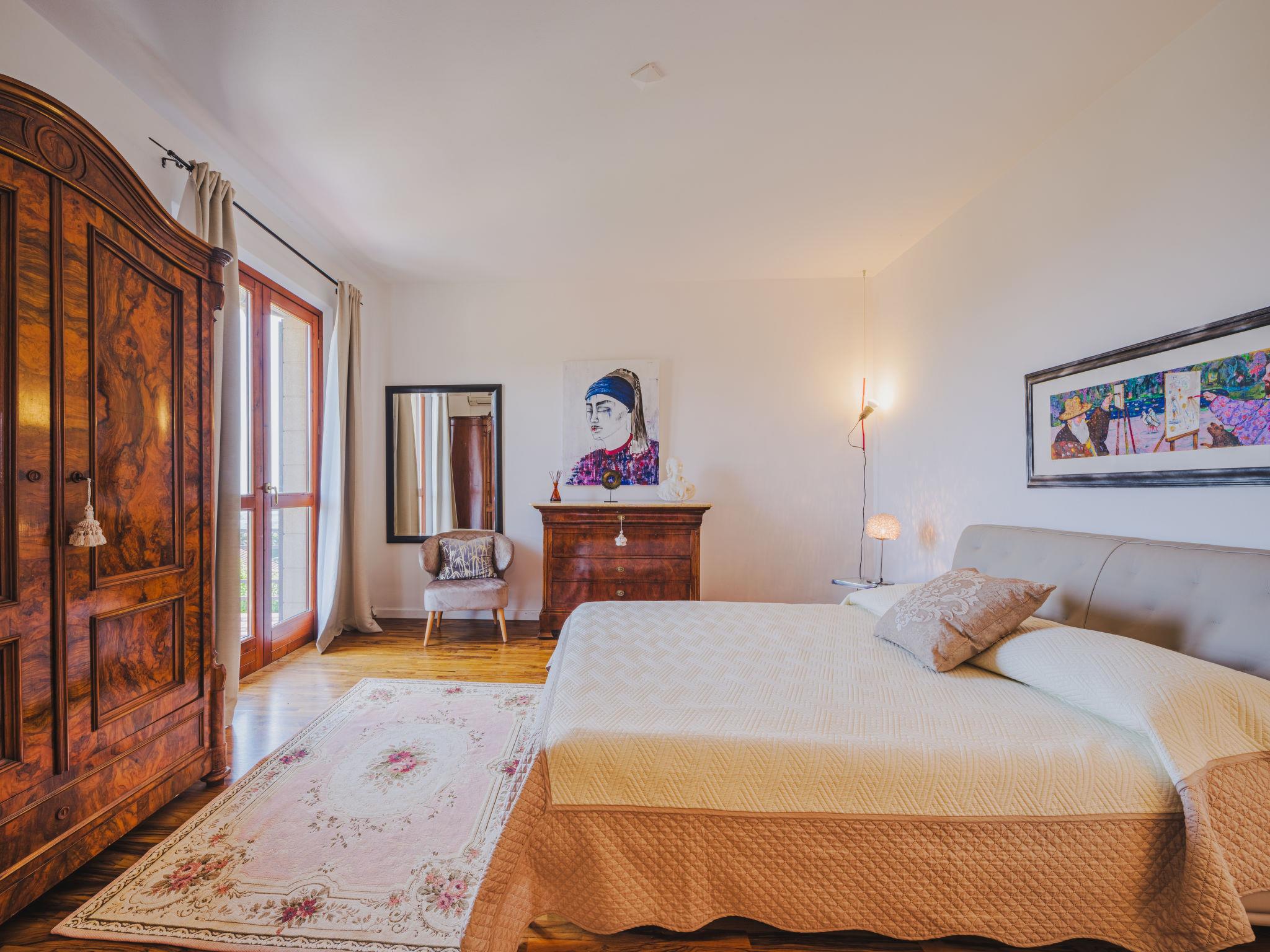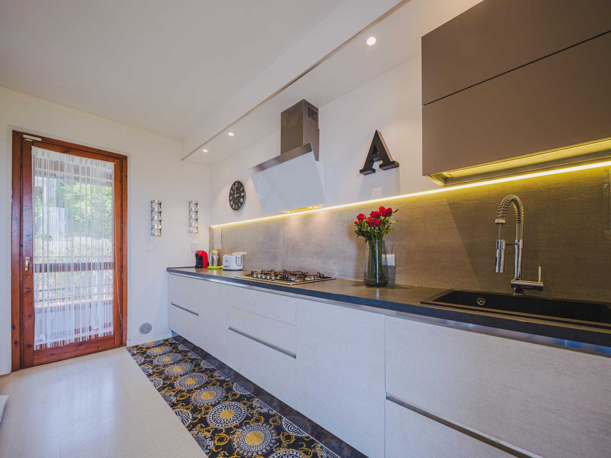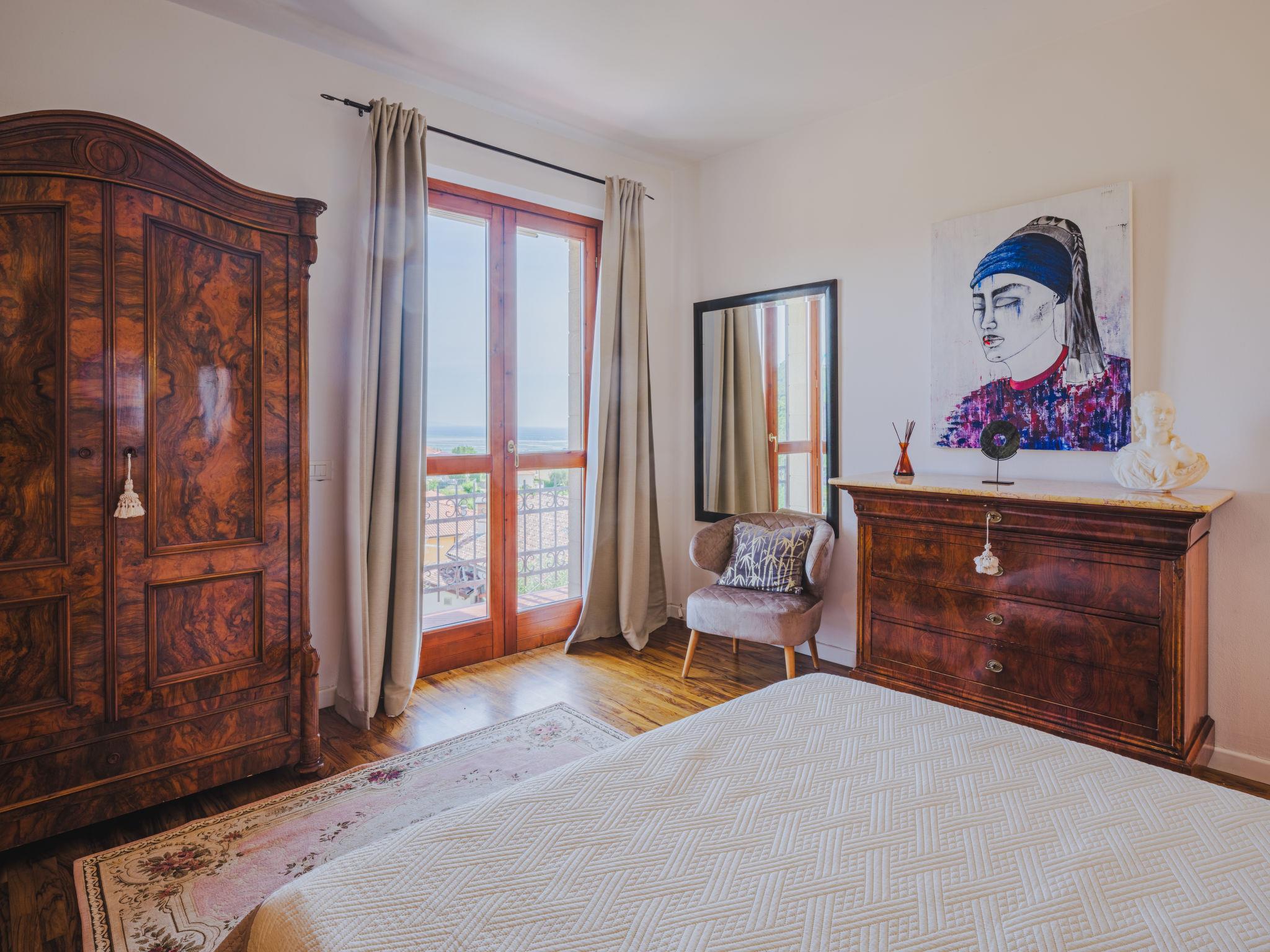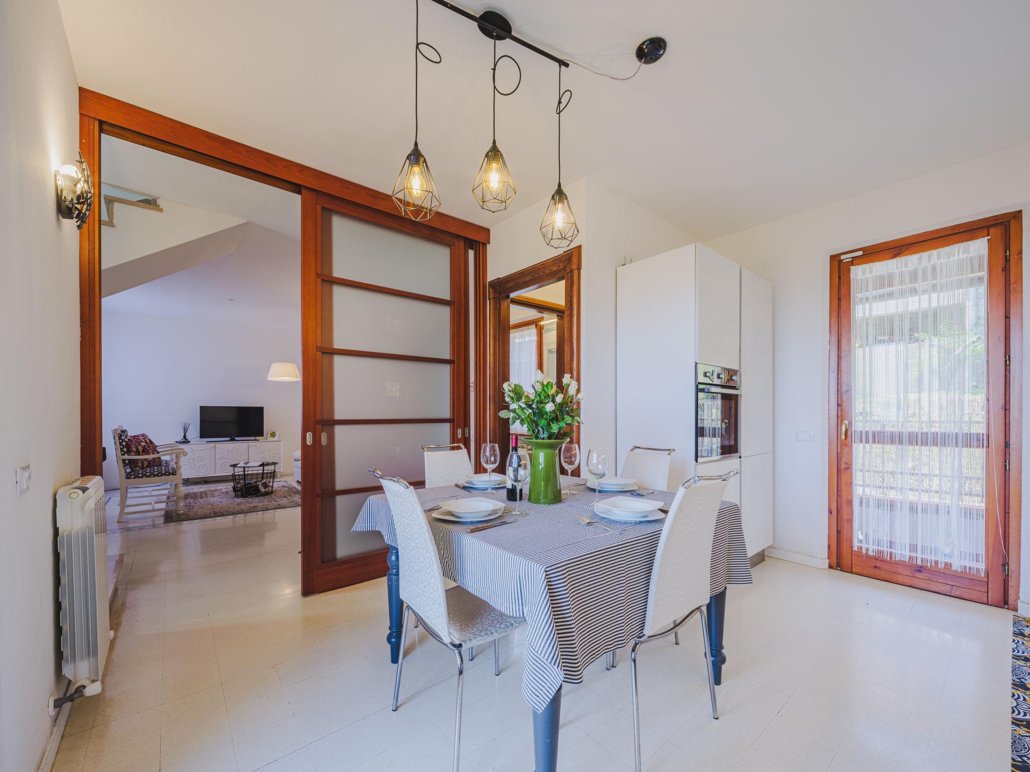 "Casa Lorena", 4-room semi-detached house 140 m2, on the ground floor. Spacious and bright, fully renovated, very comfortable and modern furnishings: living room with TV (flat screen). Exit to the garden, to the swimming pool. Open kitchen (5 hot plates, oven, Gas stove, toaster, kettle, electric coffee machine) with dining table. Exit to the terrace. Shower/bidet/WC. Gas heating, air-conditioning. Heating available only from 01.11. to 15.04. On the lower ground floor: large living/dining room with 1 double sofabed and open-hearth fireplace (only for decoration), dining table, kitchen corner and TV (flat screen). Upper floor: 2 double bedrooms, each room with air conditioning. Exit to the balcony. Shower/bidet/WC. Small terrace, small garden. Terrace furniture, barbecue (portable), deck chairs, sitting area. Very beautiful panoramic view of the sea and the valley. Facilities: washing machine, dryer, iron, hair dryer. Internet (WiFi, free). Parking (roofed, fenced 1 car). Please note: suitable for families. Non-smoking house. Smoke alarm, fire extinguisher. The rooms on the lower floor have bay windows. IT046018C2IVD8GYP9